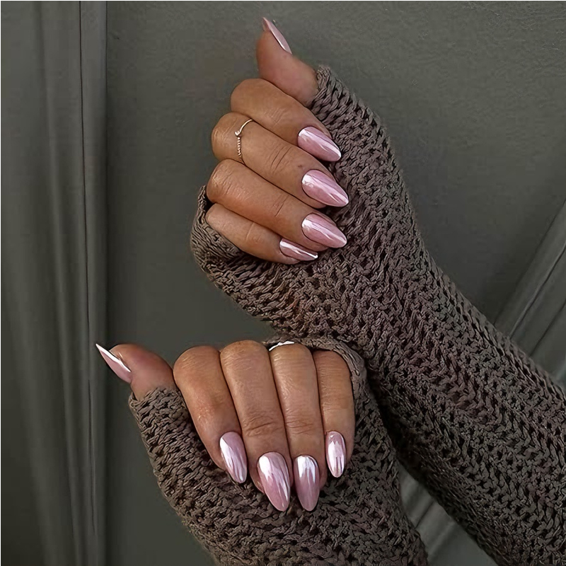 24 PCS Aurora Powder Nail Art, Length Long Water Pipe Fake Nails, Had Nail Tips False Nail