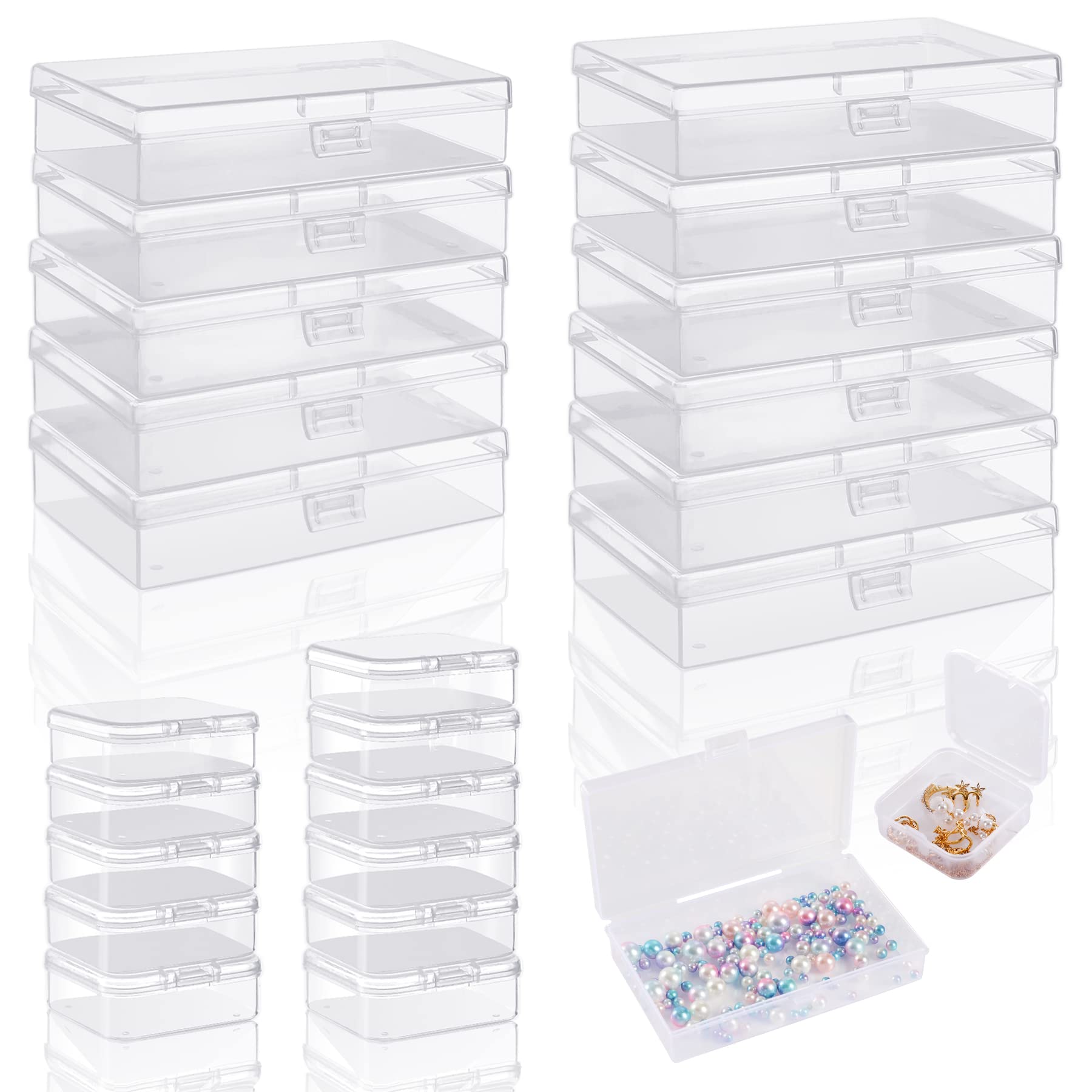 24 Pcs Mixed Sizes Clear Plastic Storage Containers, Small Rectangular Storage Organizer With Lid,Beads Storage Box For Storage Beads, Crafts, Jewelry, Clay, Crayons, Pins,Sewing, Cards