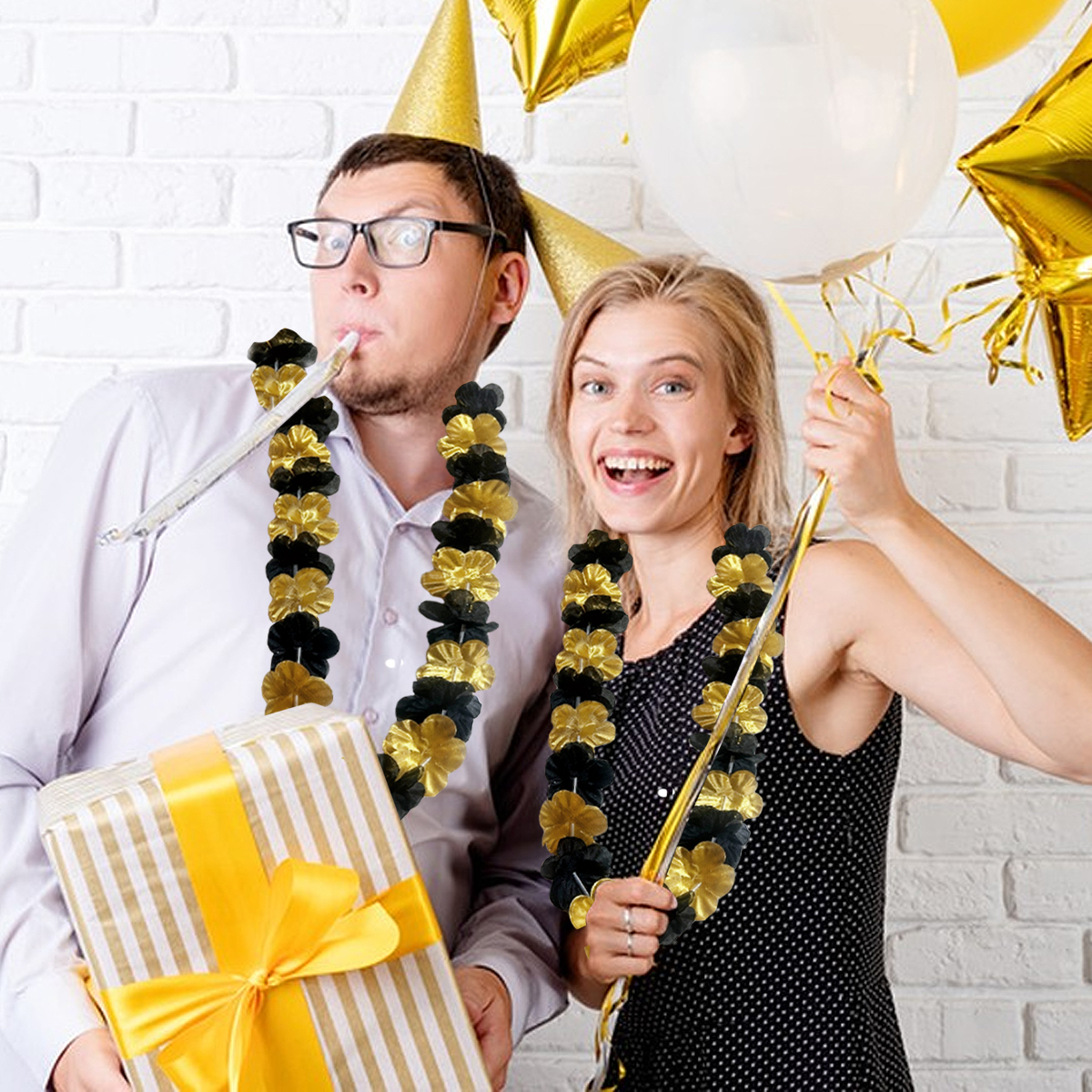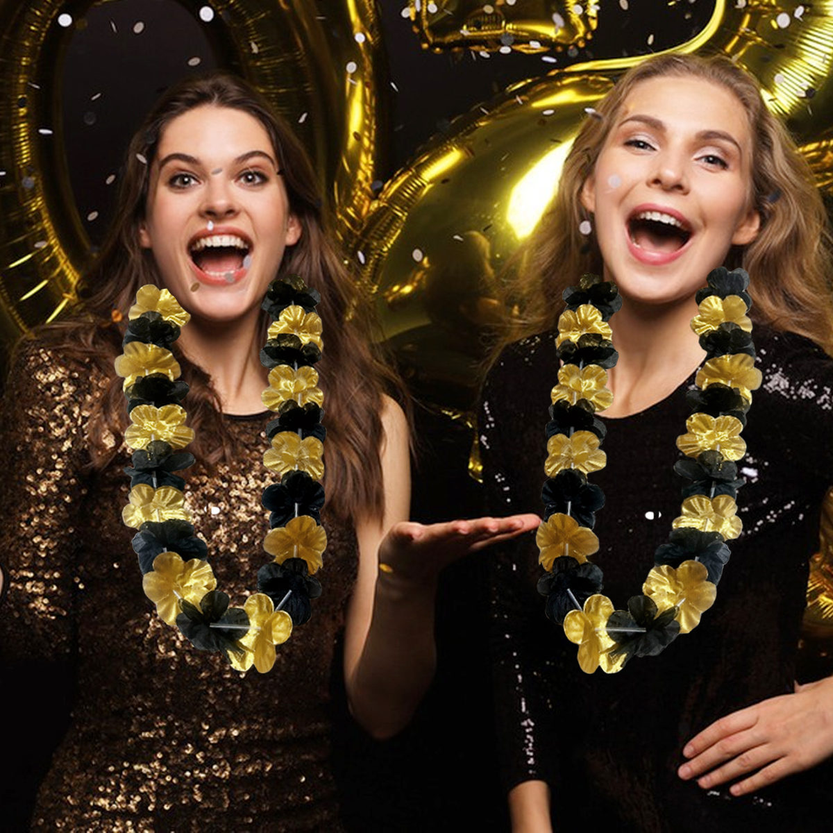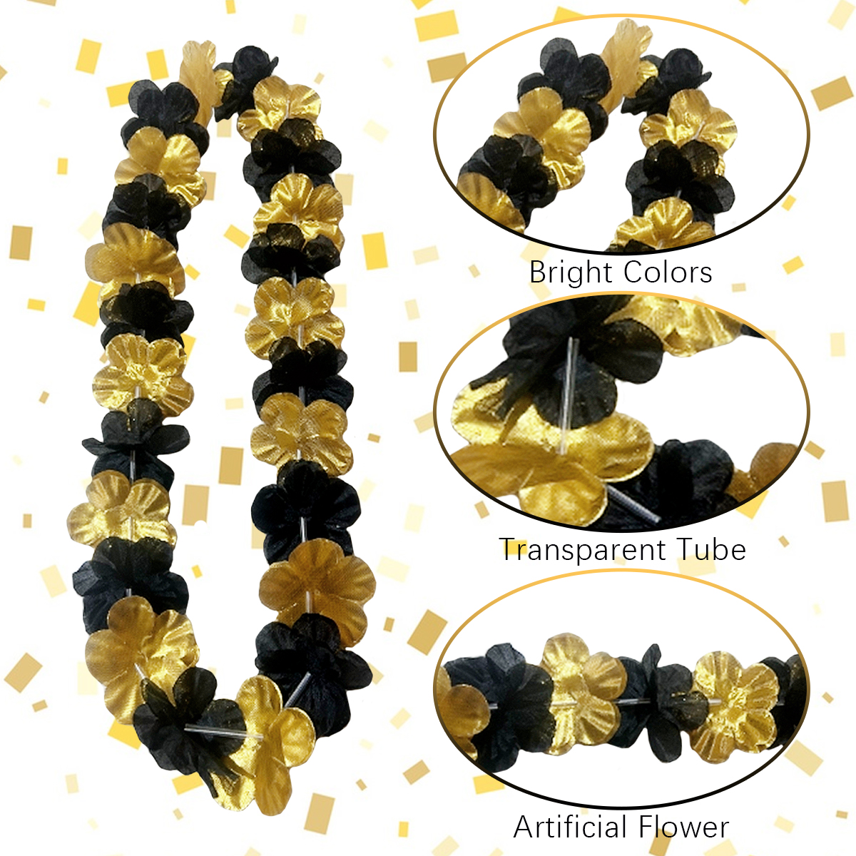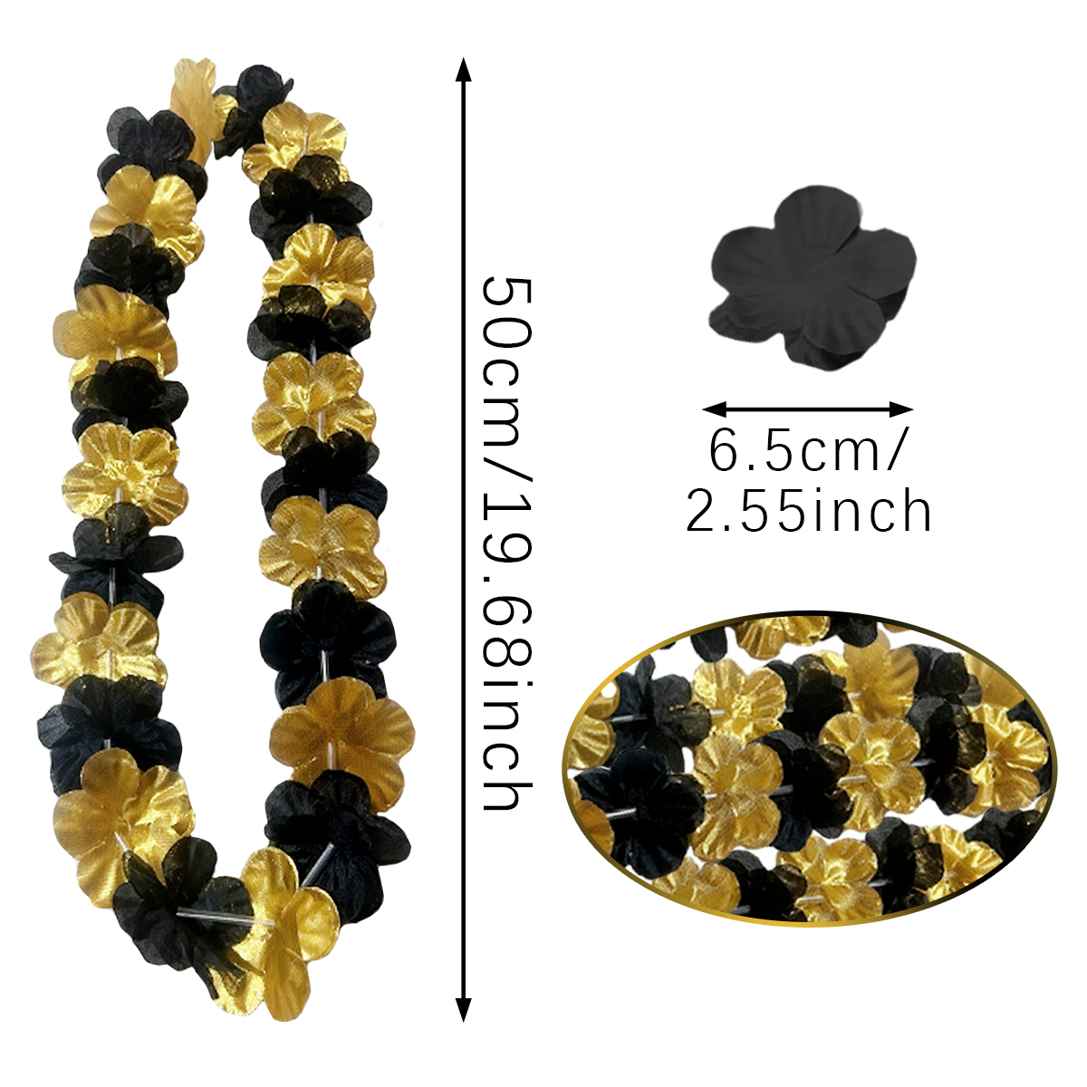 Package Contents: 24Pcs Black Golden Flower Lei