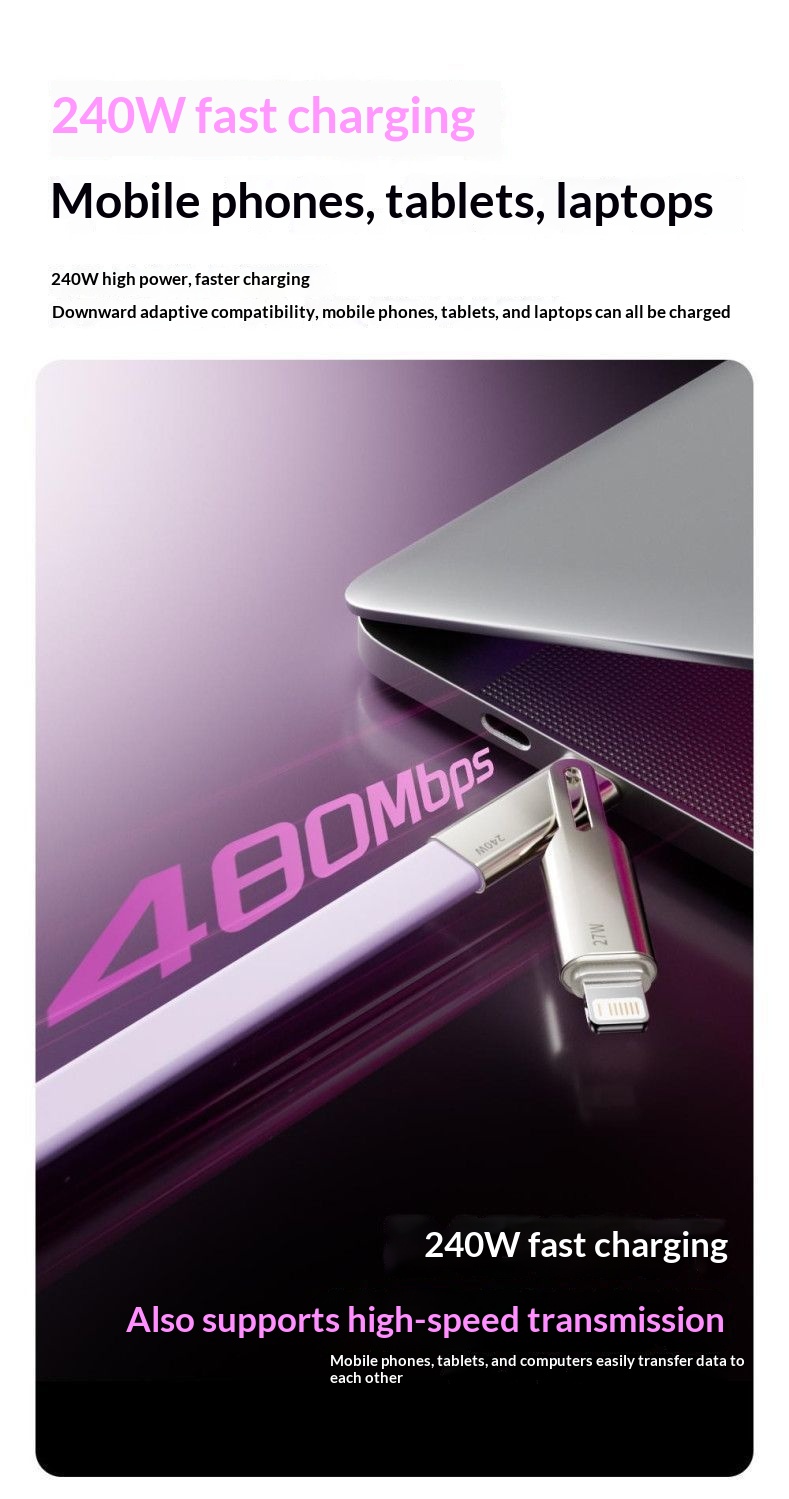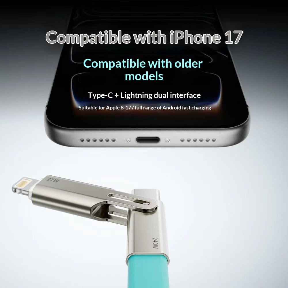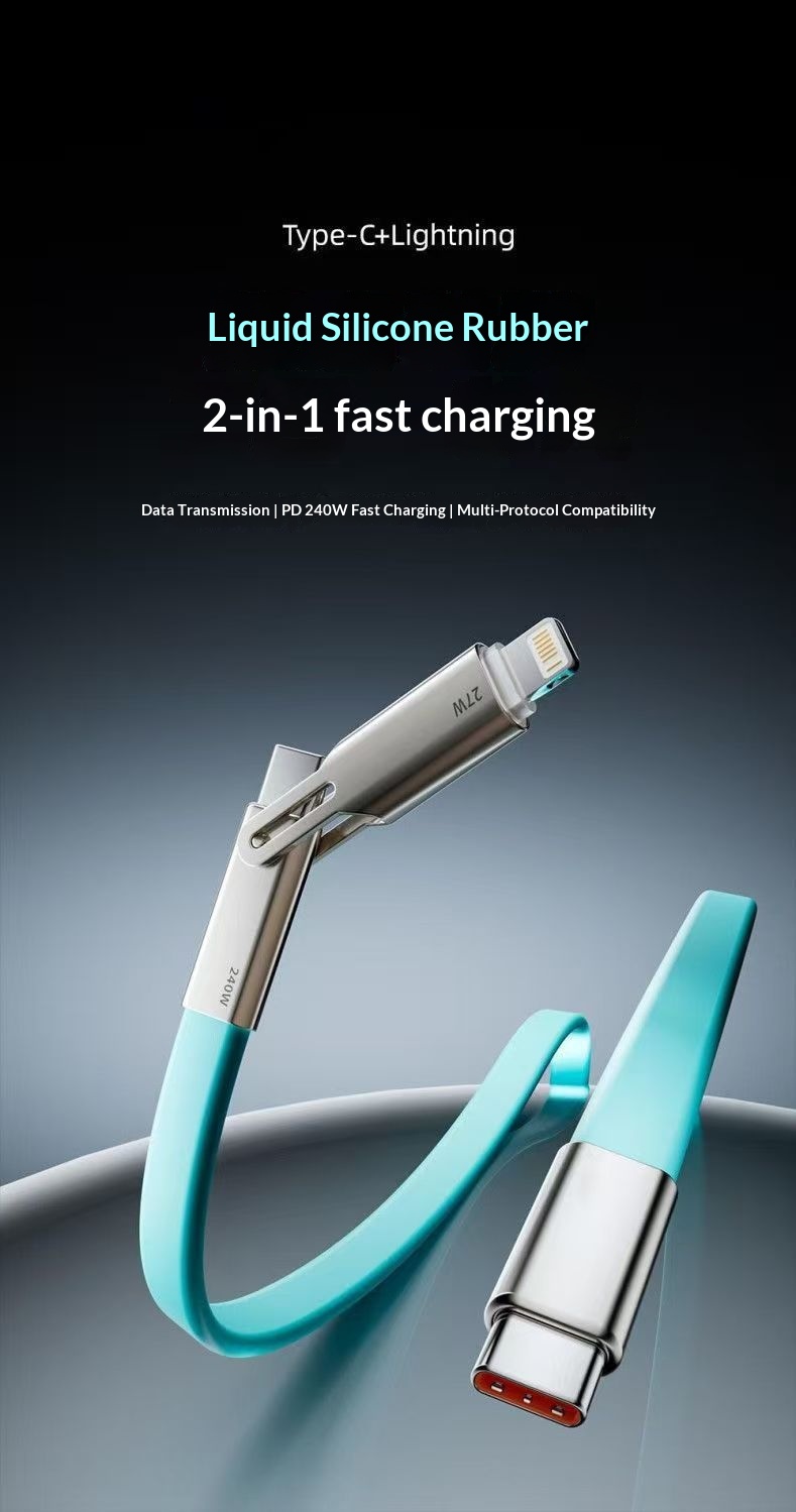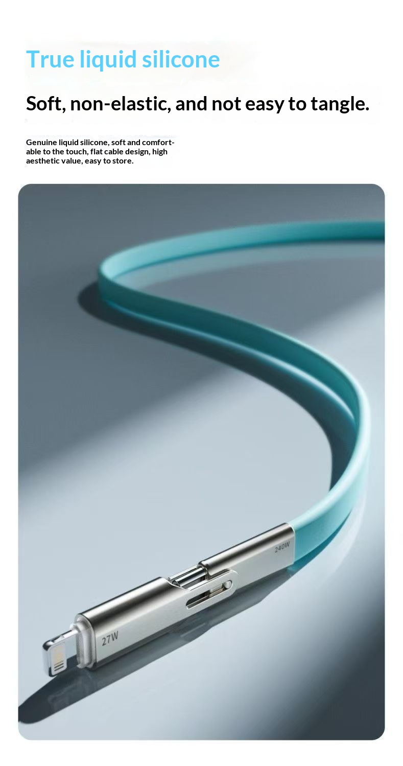 240W Multi-Protocol Fully Compatible 2-in-1 Charging Cable With Silicone