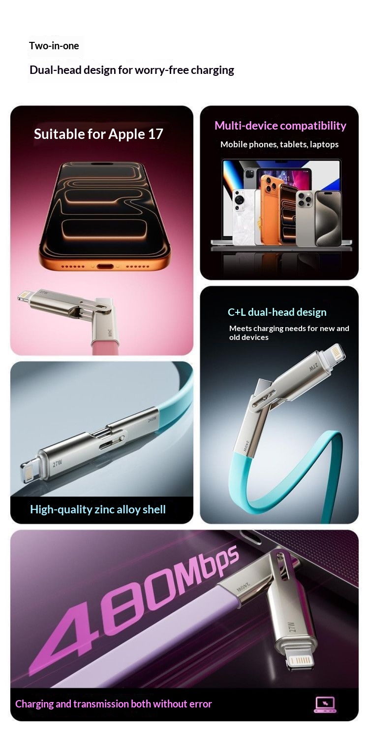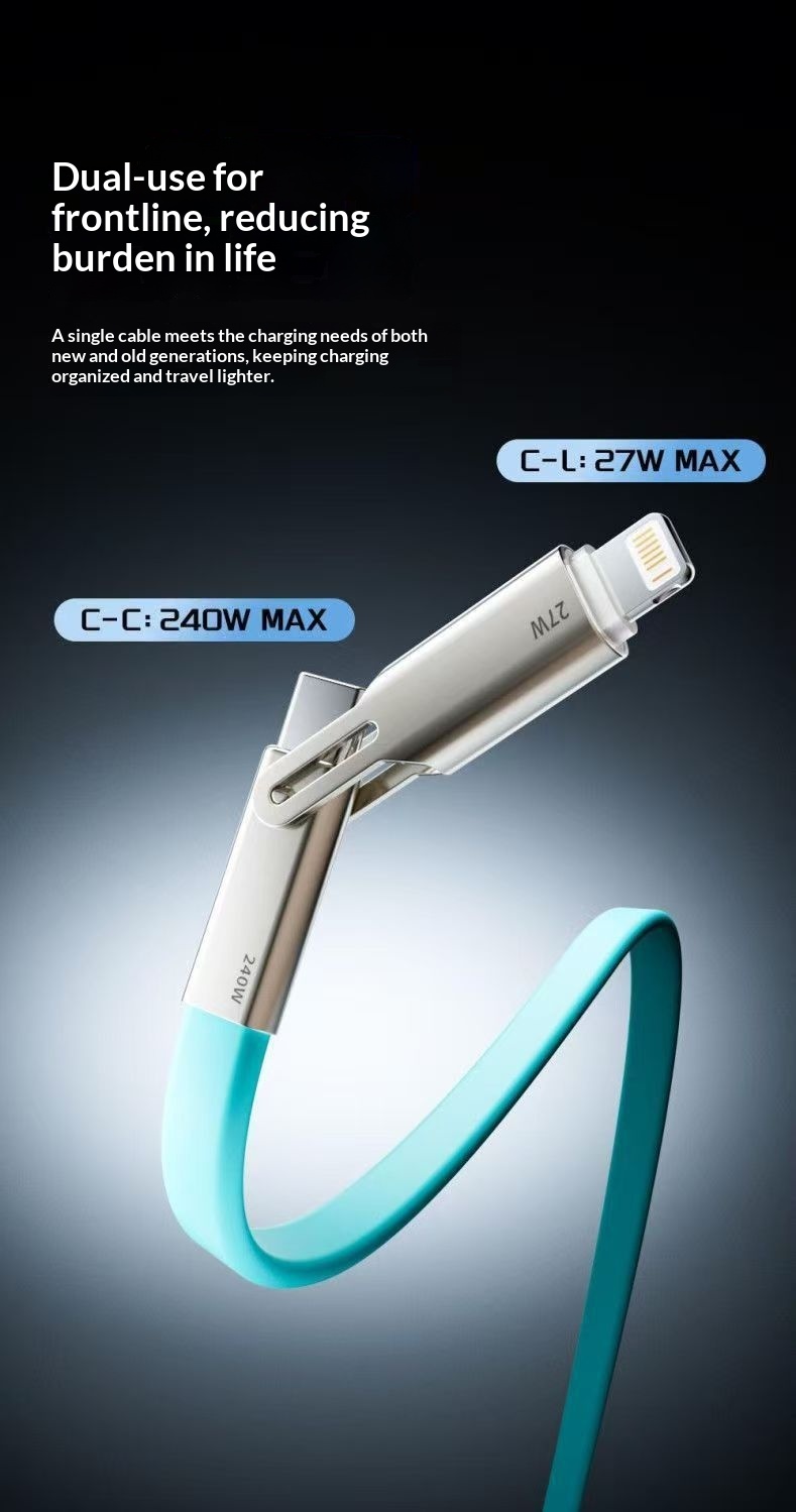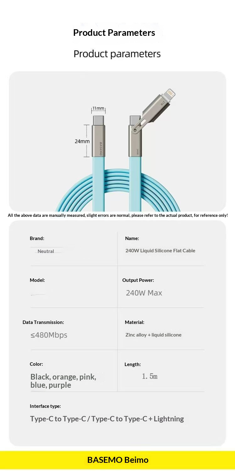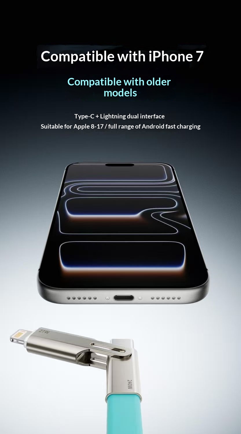 240W Multi-Protocol Fully Compatible 2-in-1 Charging Cable With Silicone