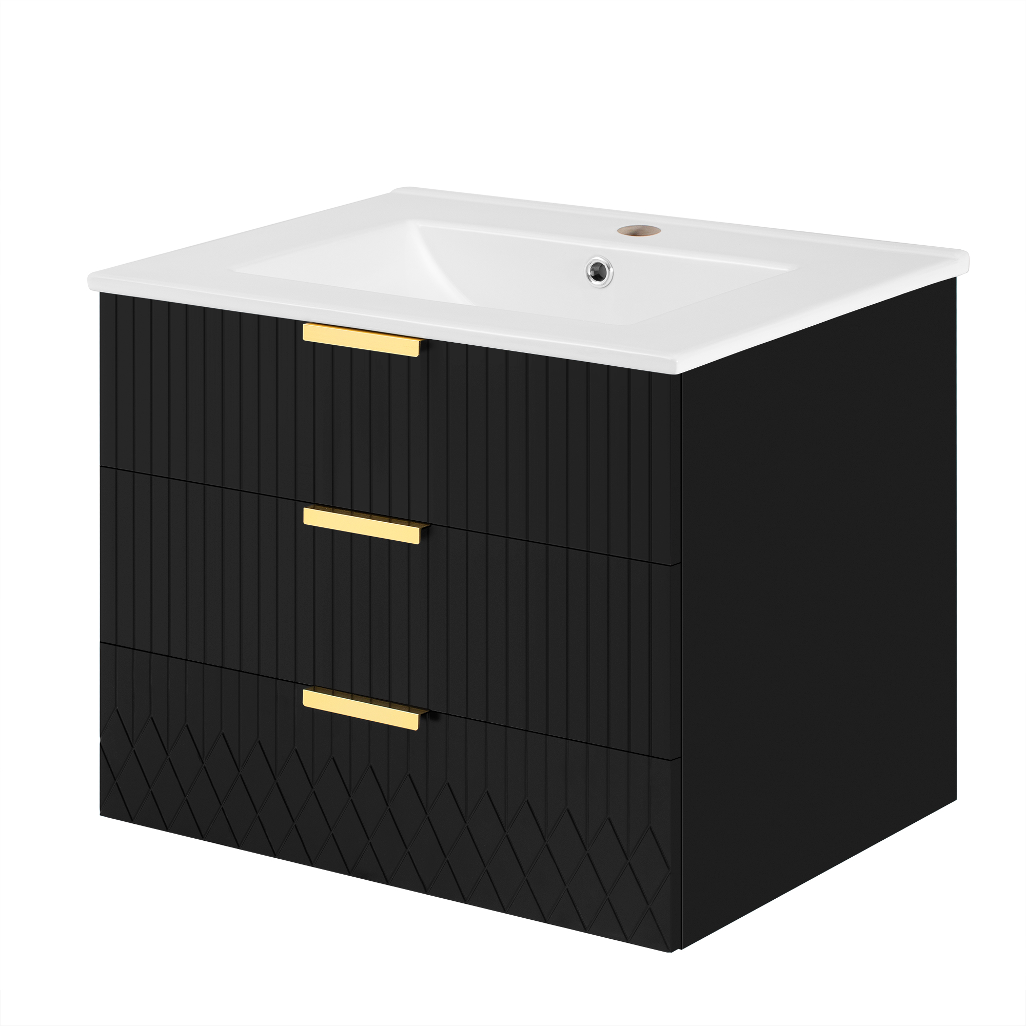 Experience the perfect fusion of premium design and intelligent functionality with this wall-mounted bathroom cabinet. Its core features a durable ceramic basin sink, complete with an anti-spill hole and a standardized faucet fitting, ensuring long-lasting performance. The elegant L-Shape handles and subtle stripe carving elevate the aesthetic, while the spacious interior provides ample room to organize all your essentials. Designed with versatility in mind, the cabinet can be mounted at your preferred height, creating a customized storage solution that maximizes space and simplifies cleaning in any bathroom.