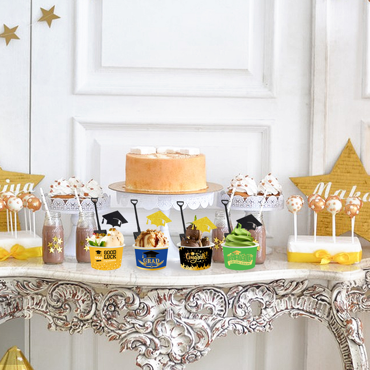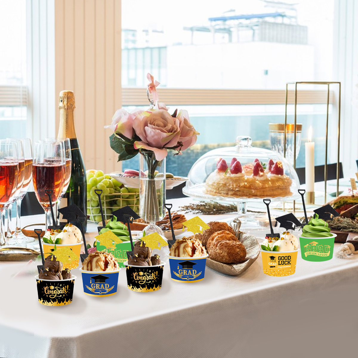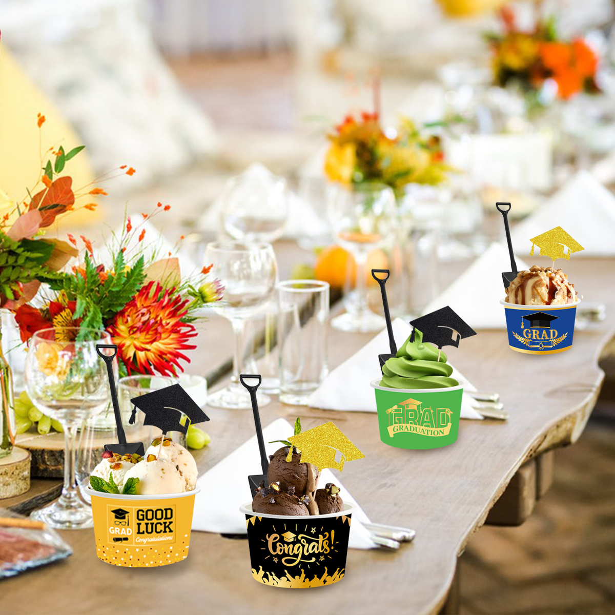 24Pcs Paper Ice Cream Cups with 24pcs Spoons and 24pcs Decorative Toothpicks
