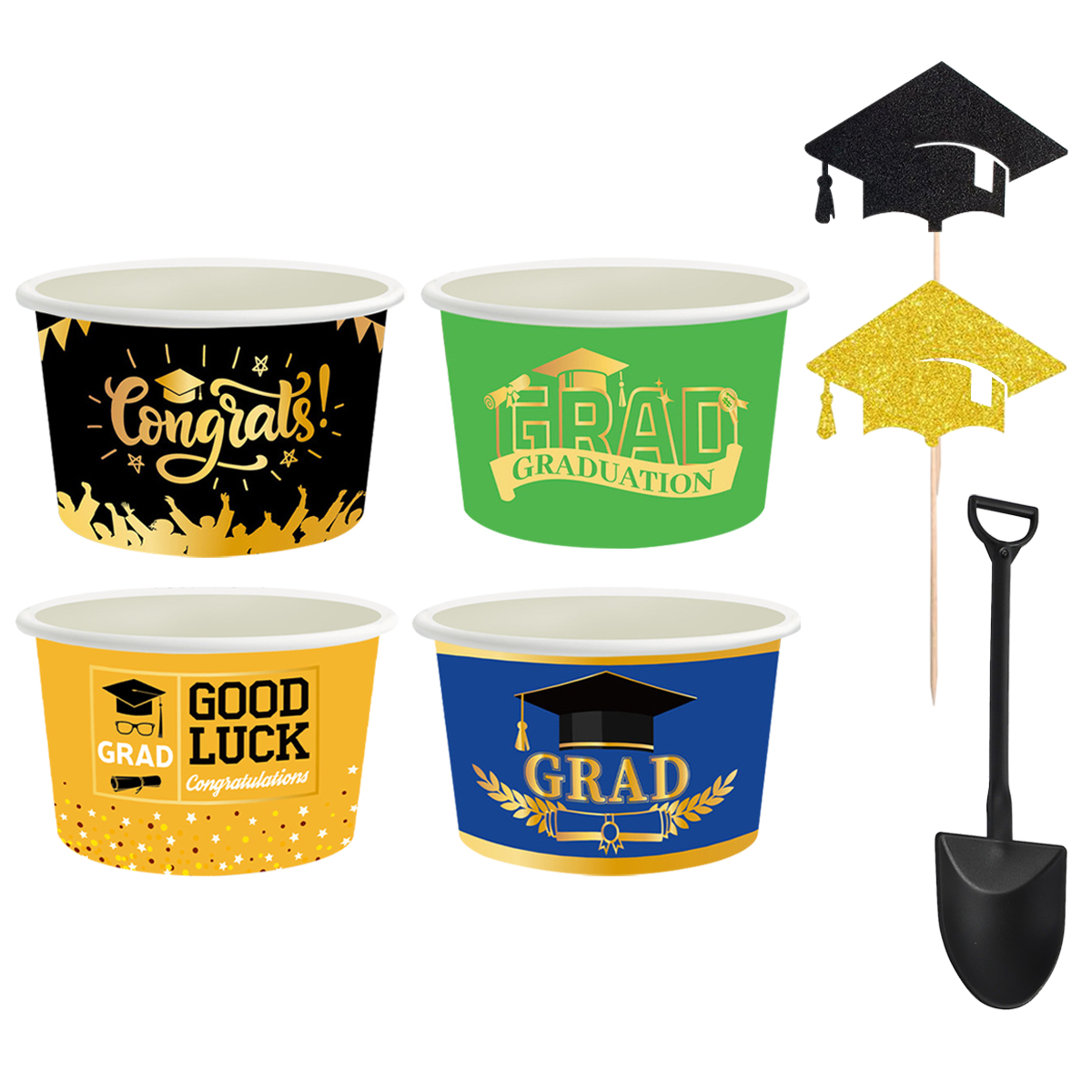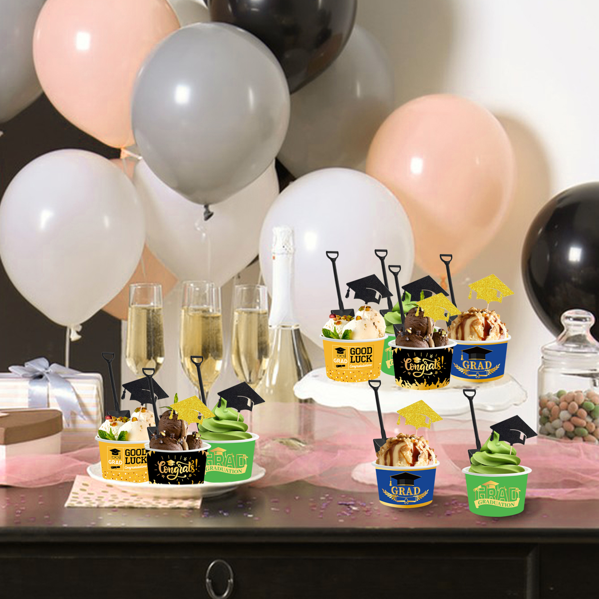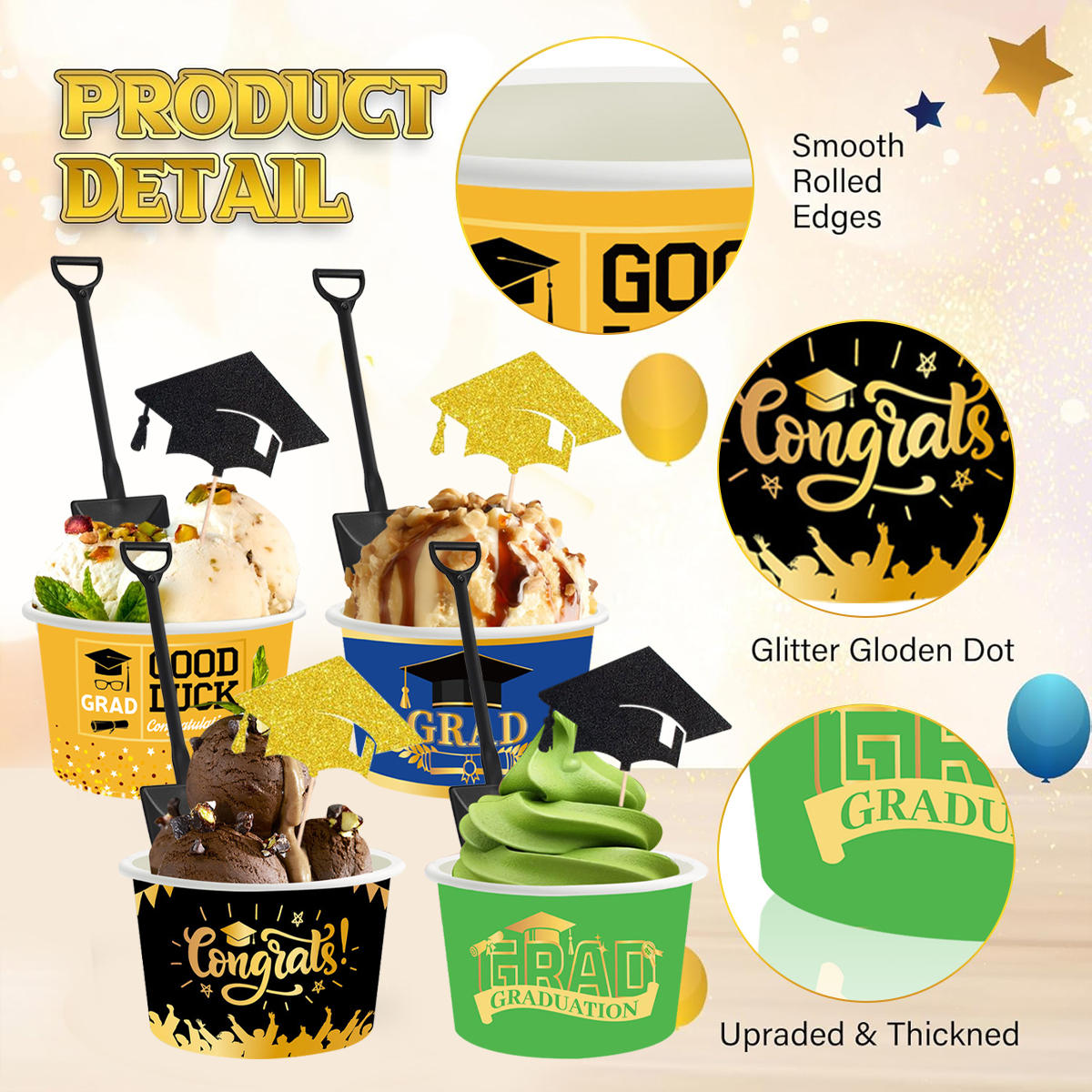24Pcs Paper Ice Cream Cups with 24pcs Spoons and 24pcs Decorative Toothpicks