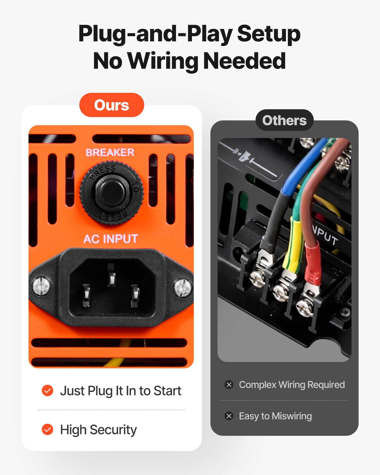 Quick Plug-In Setup: Say goodbye to risky wiring. This sump pump battery backup inverter features a standard 3-prong plug for quick and secure installation. It reduces errors and electrical hazards. Just plug in, and you're ready