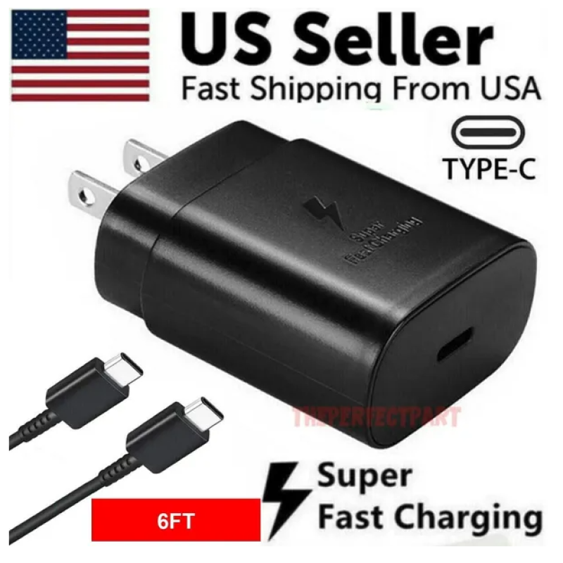 25W Type USB C Super Fast Wall Charger 6FT Cable For Galaxy S20 S21 S22