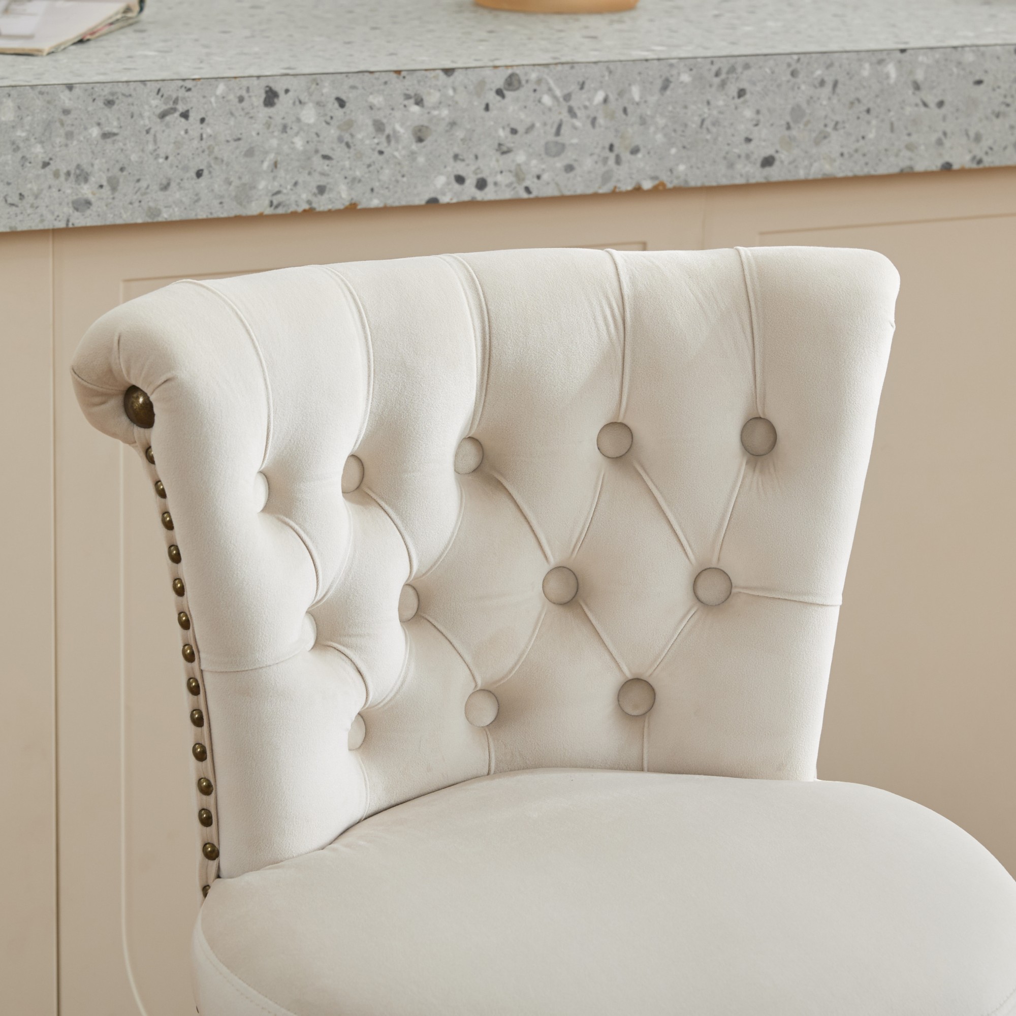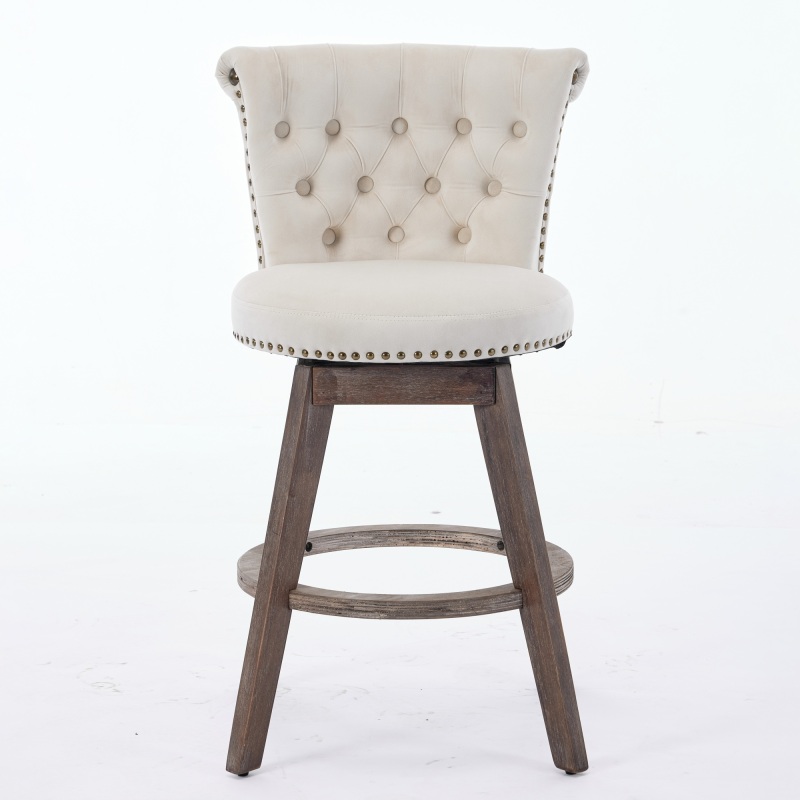 Product Name:26" Counter Height Bar Stools Set of 2, 360° Swivel Stools with Back & Hand - Tufted Button - Trimmed Edges, Upholstered Velvet Kitchen Counter Stools on Wood Legs,Beige,SW1868BG