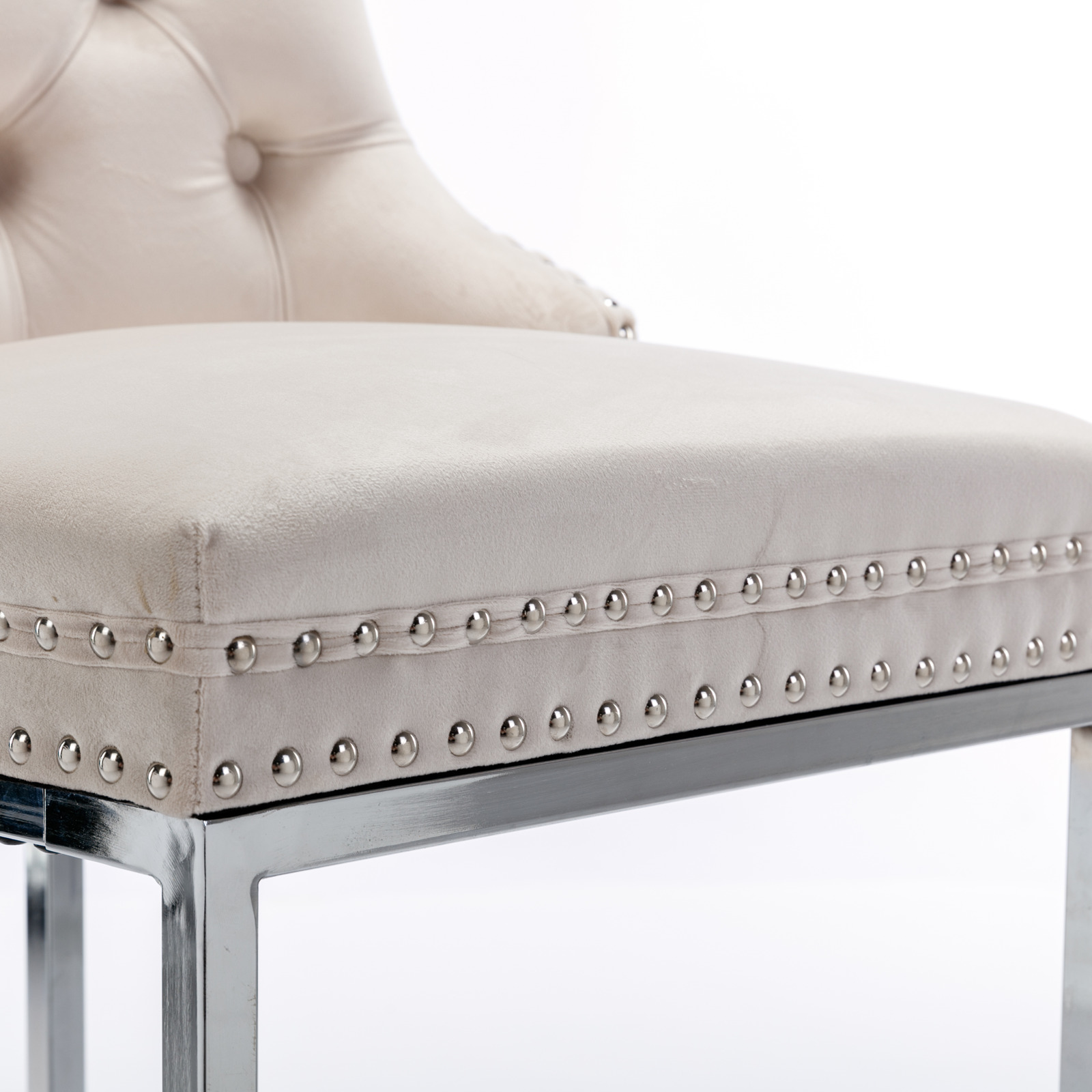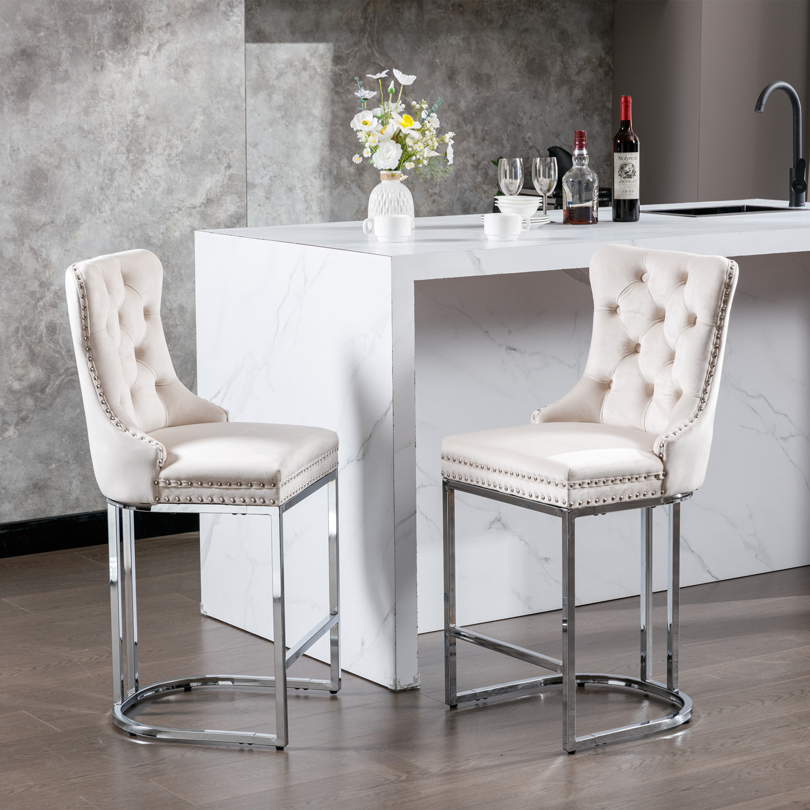 Product Name:26" Counter Height Bar Stools Set of 2, Modern Velvet Barstools with Button Back&Rivet Trim Upholstered Kitchen Island Chairs with Sturdy Chromed Metal Base Legs Farmhouse Bar Stools, (Beige,2 Pack)