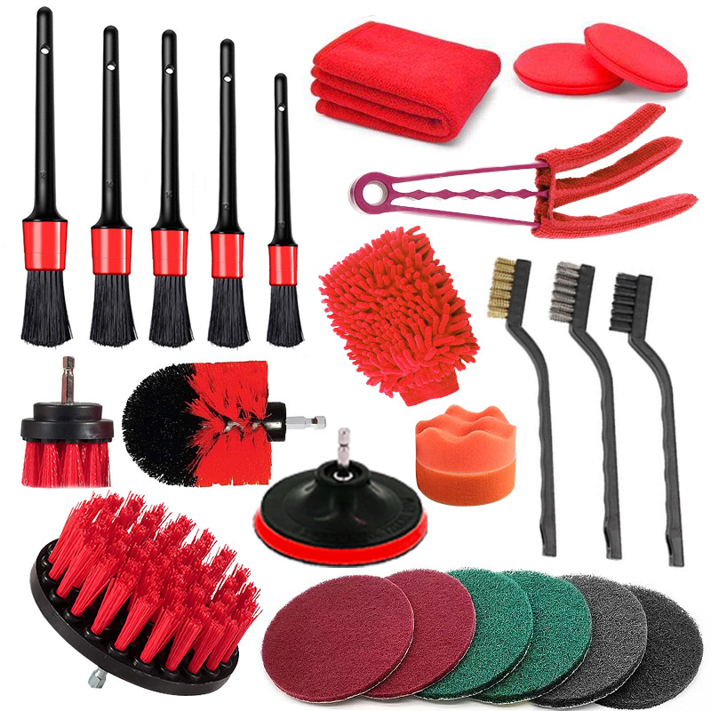 Specifications: 17 piece set, 12 piece set, 29 piece set, 36 piece set, 23 piece set of drill brushes, 26 piece set of drill brushes, 26 piece set of drill brushes red