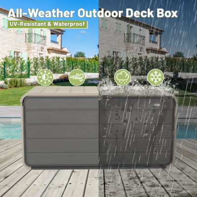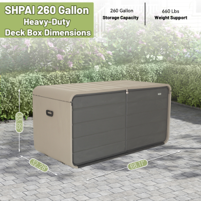 Product Name:260 Gallon Plastic Deck Box, Large Patio Storage Box with Lock, Wheels & Waterproof Lid for Outdoor Cushions, Garden and Pool Supplies (Gray)