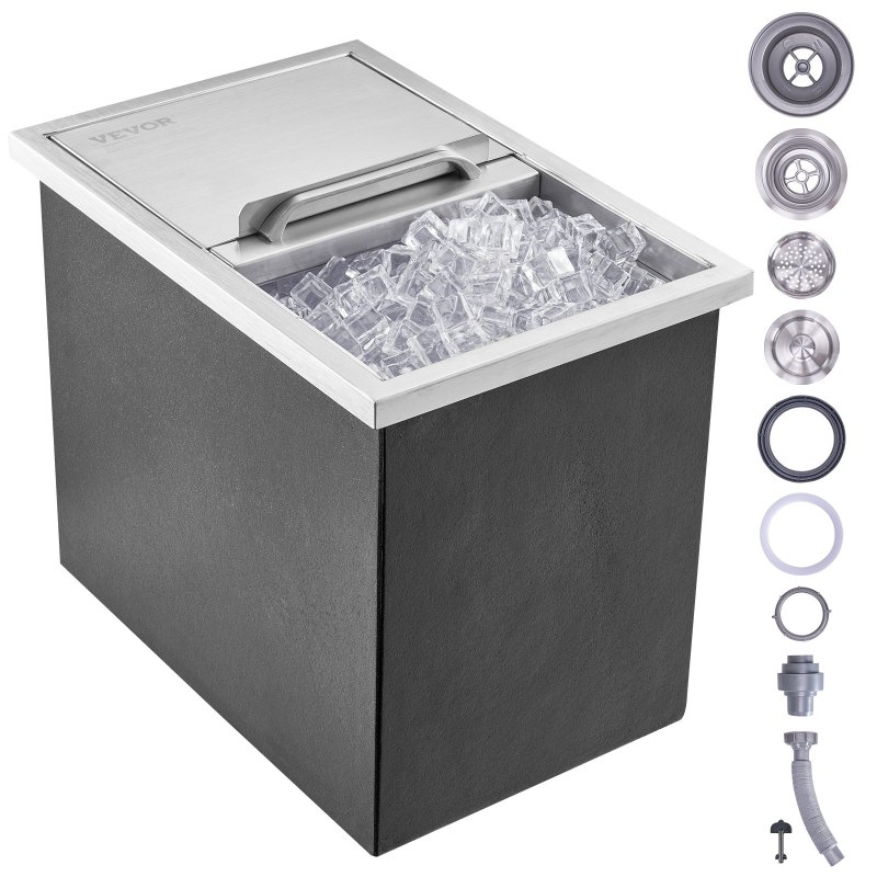 VEVOR 26,7 L Drop-in-Eisbox, 456 x 304 x 371 mm Edelstahl-Eiskühler, Kommerzieller Eisbehälter mit Schiebedeckel, Eingebaute Eisspeichertruhe, Abflussrohr & Ablassstopfen im Lieferumfang Enthalten