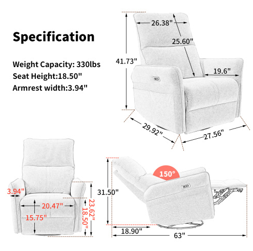 | Function | 270° swiveling,30° rocking and 95-150° reclining |