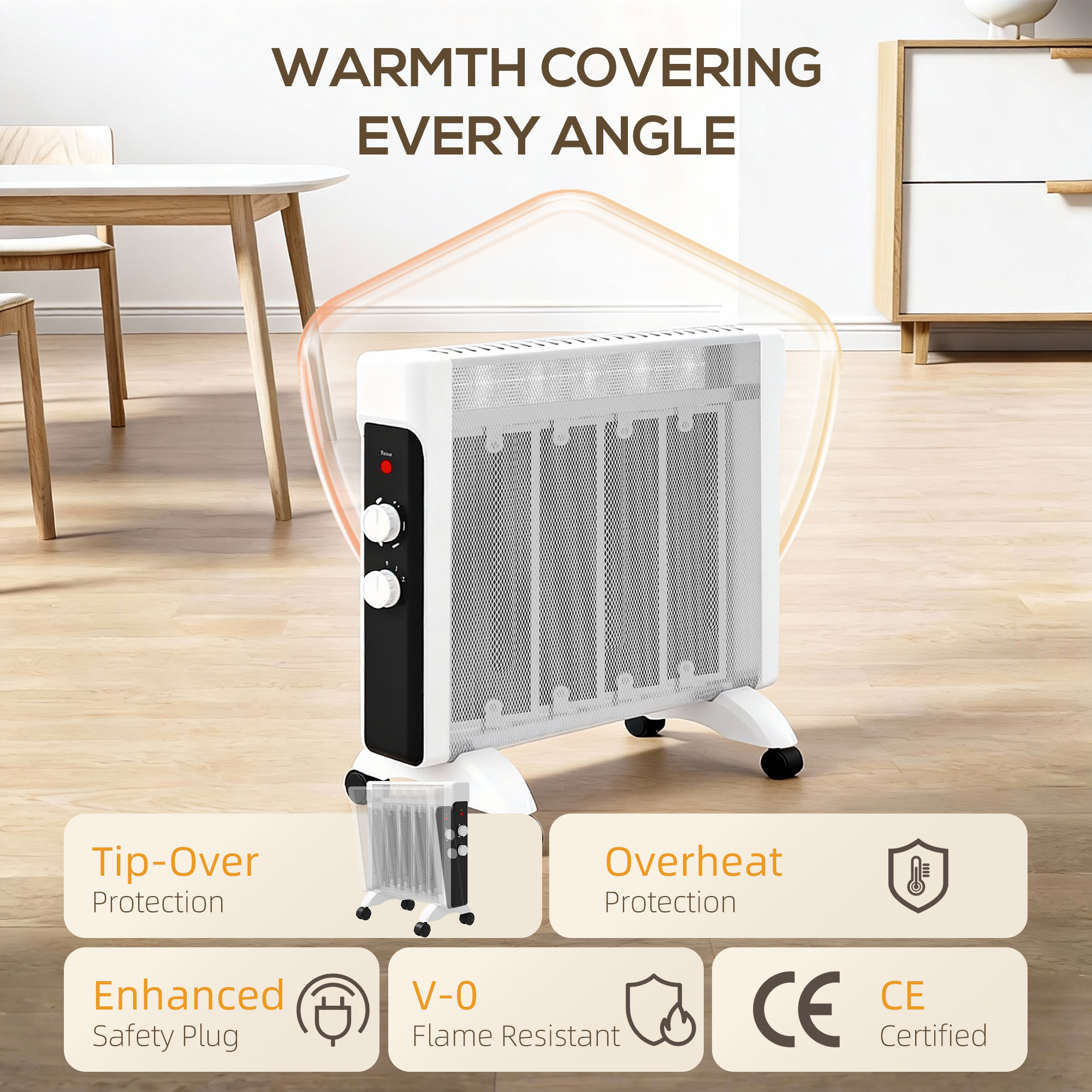Cosy warmth and easy movement comes in the form of this electric heater. Flick between the 1000W/2000W power, and choose a temperature between 10-45℃: it's super easy to set it to run how you want. The adjustable settings also make this heater for bedroom great for using different times of the year. The overheat and tip-over protection ensures ultime safety; room heater is complete with four wheels to move around easily.