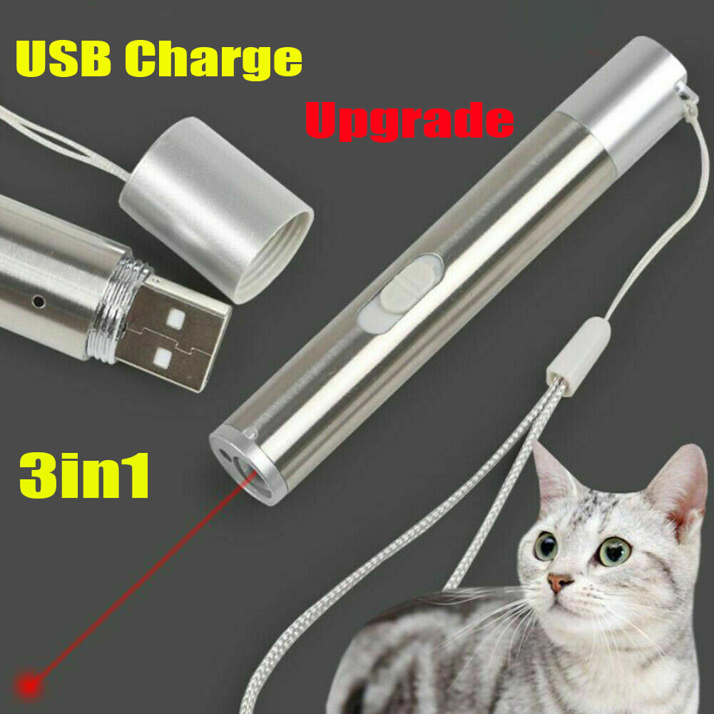 2PC 3in1 Red Laser Pointer Pen USB Rechargeable 1mW w/ Led Flashlight & UV Light