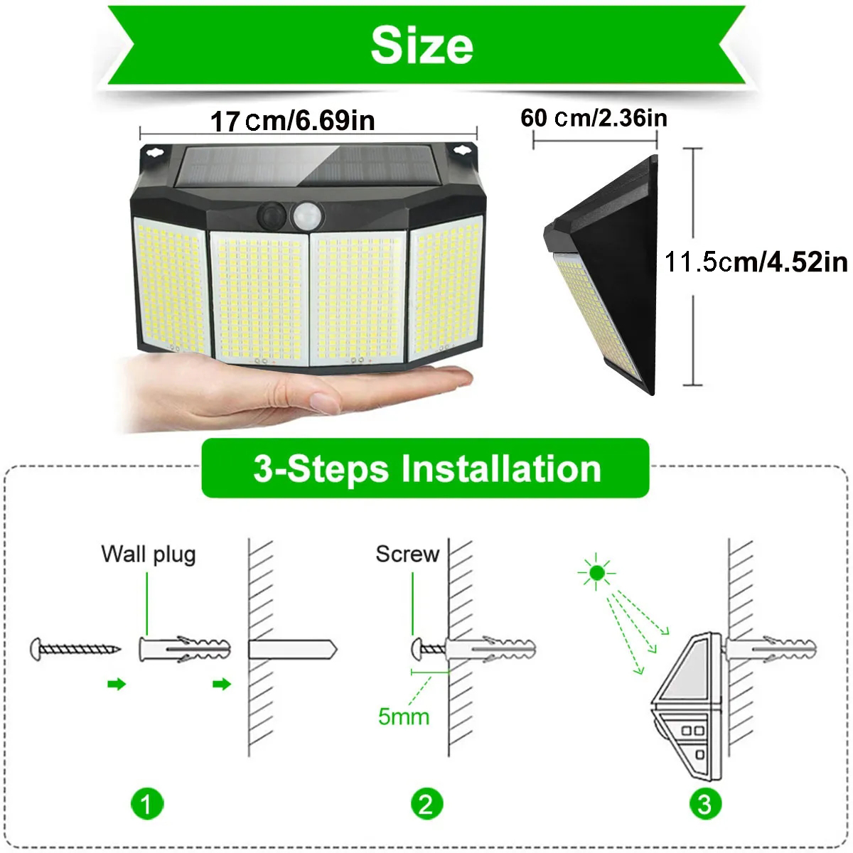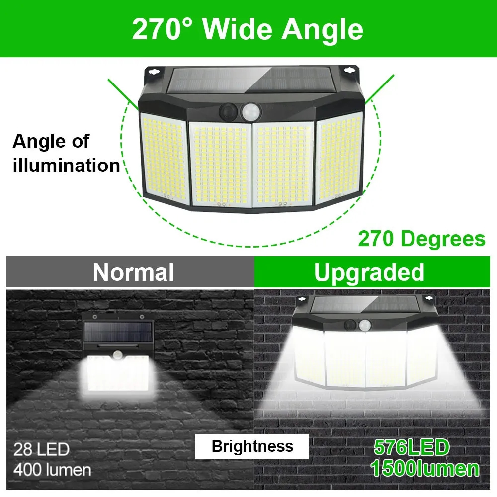 2pc Solar Lights Outdoor 576 LED With Lights Reflector And 3 Lighting Modes, Solar Motion Sensor