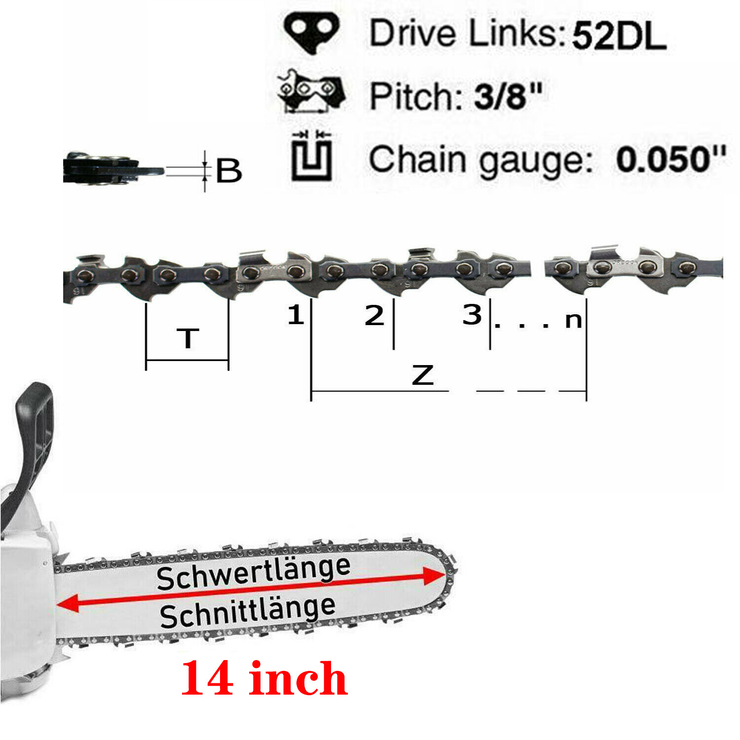 Fit saw's guide bar length:14"