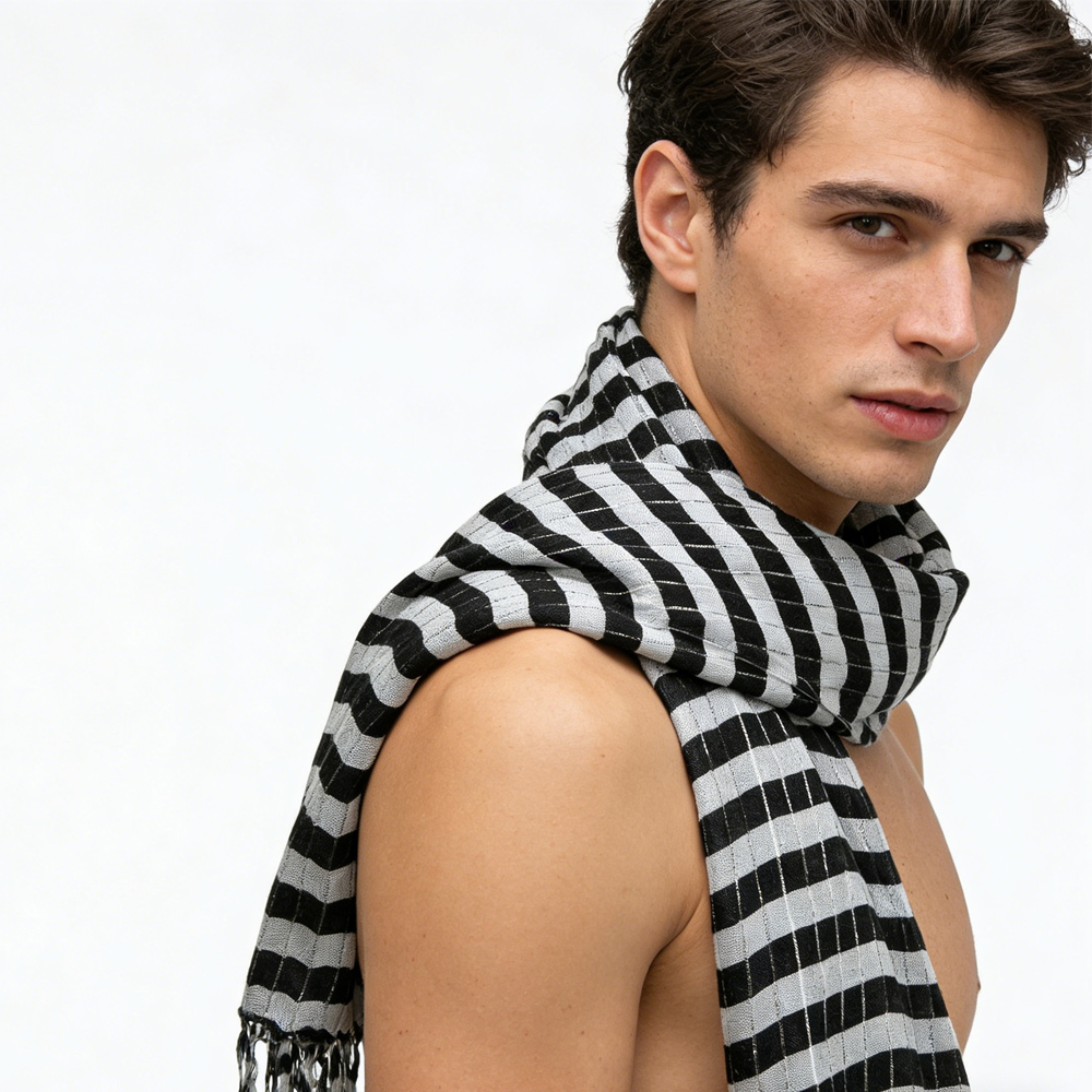 Black White Square Scarf,stripe With Metallic Threads Scarf,Luxe look for evening wear,Scarf,vacation,daily life,evening party,Office appropriate subtlety for women men