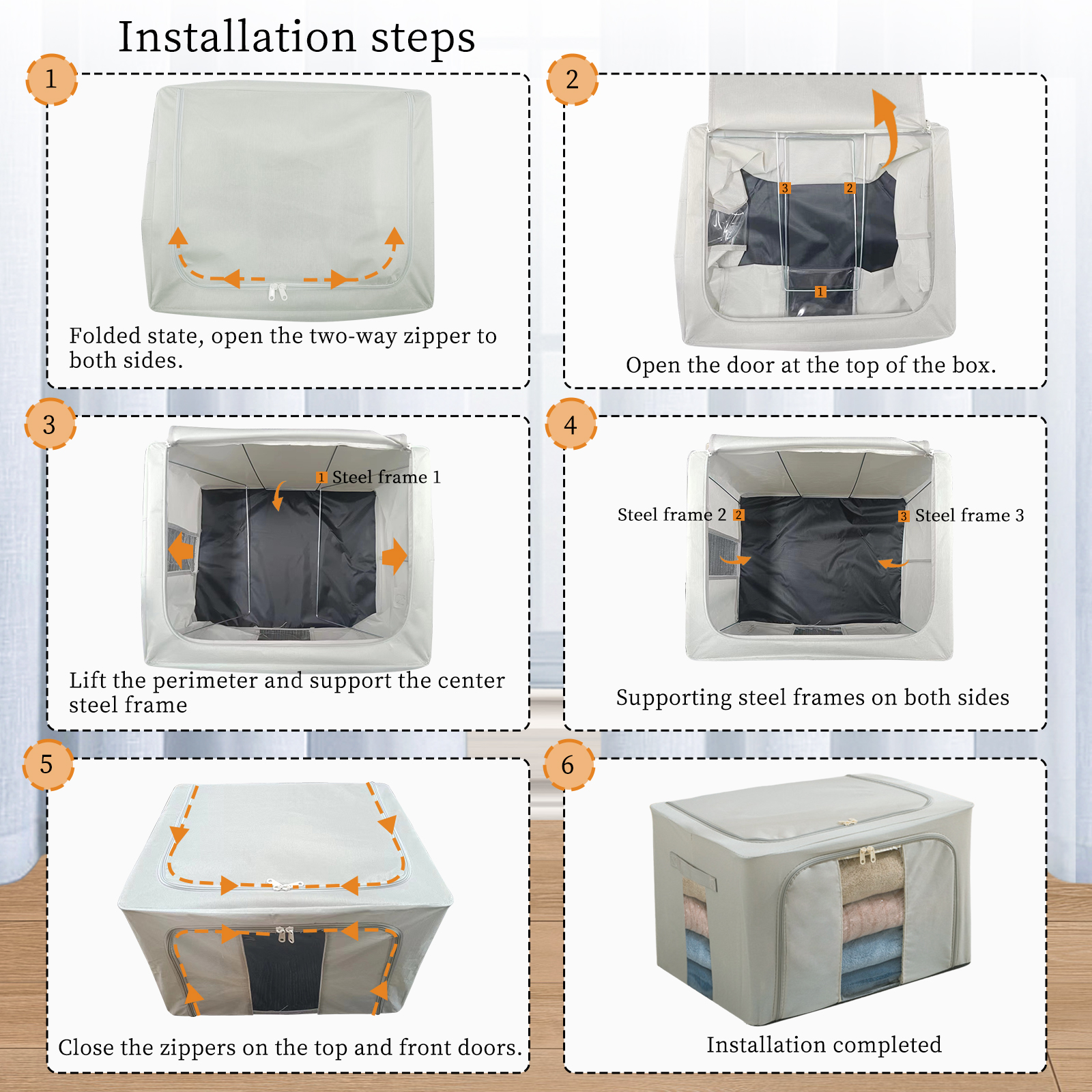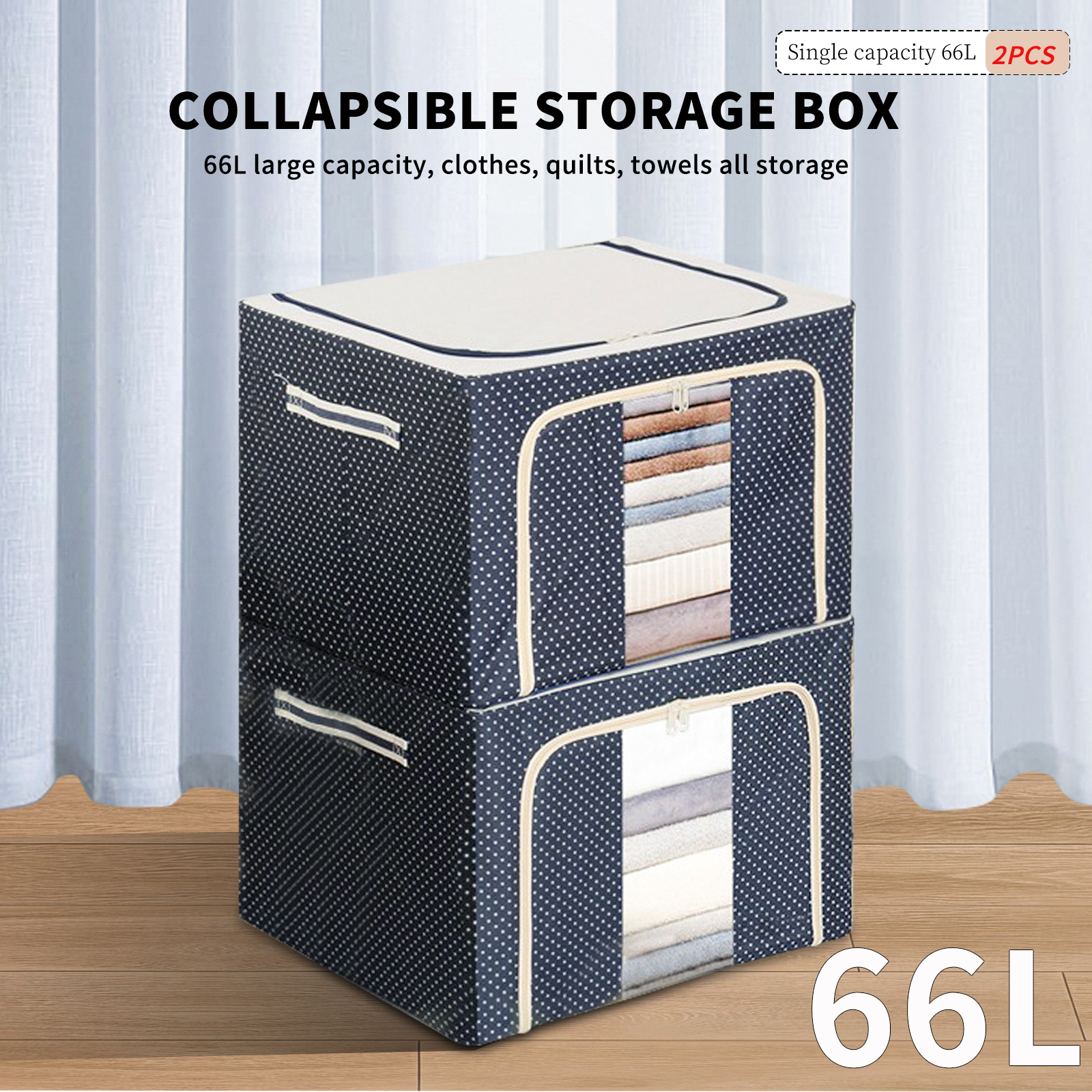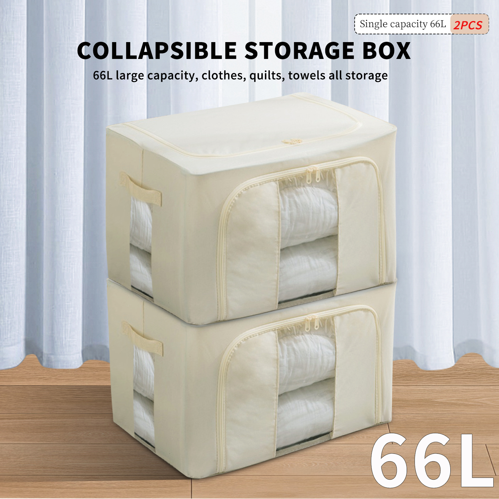 2PCS Foldable Oxford Cloth Storage Boxes Large Capacity With Clear Window & Sturdy Zippered Lids Multi-Size Stackable Organizer Bins For Clothes And Quilts Space-Saving, Easy Access Design Ide