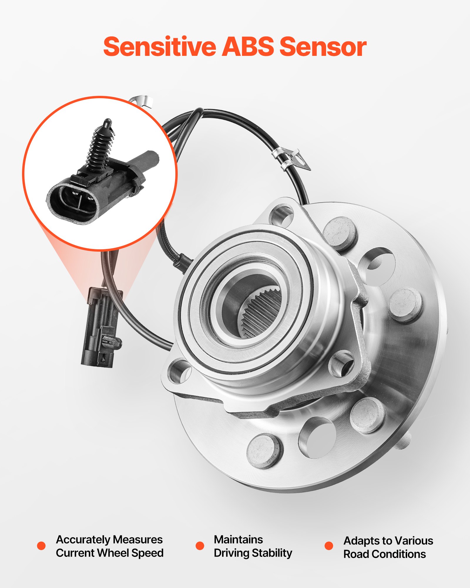 ABS Sensor Equipped: The wheel hub includes a precision ABS sensor to monitor wheel speed. It delivers accurate data to the ABS system and enhances braking performance with real-time anti-lock control