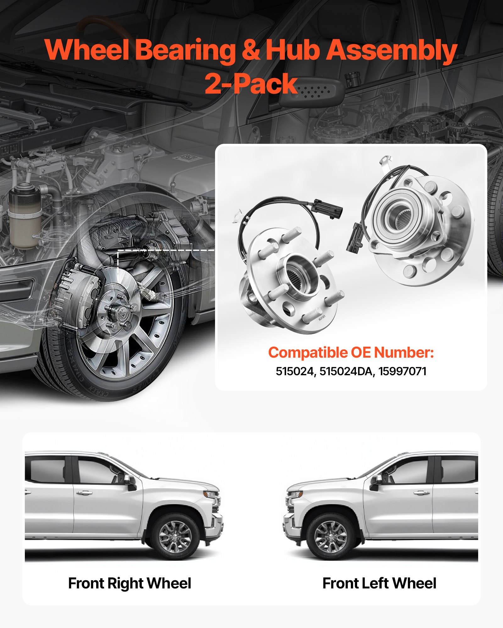 Meets OEM Standards: OE Numbers: 515024, 515024DA, 15997071. Our 2-pack wheel bearing hub assembly is designed for front wheels