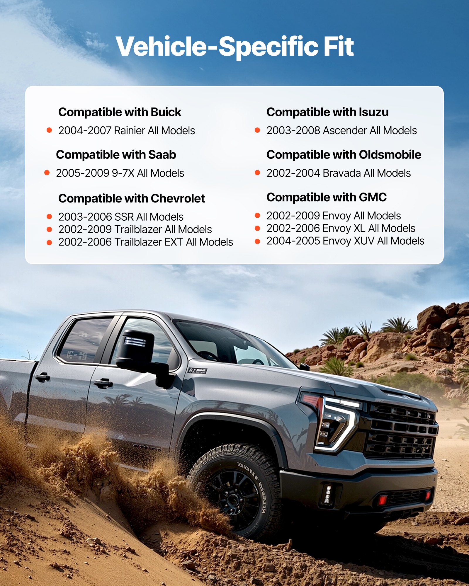 Vehicle Fitment: This wheel hub assembly is tailored for specific models, compatible with 2004-2007 Buick, 2003-2006 Chevy, 2002-2009 GMC & 2005-2009 Saab vehicles. Note: Please check the fitment chart on the page to confirm compatibility with your car