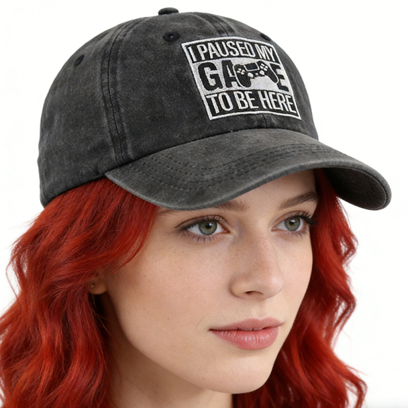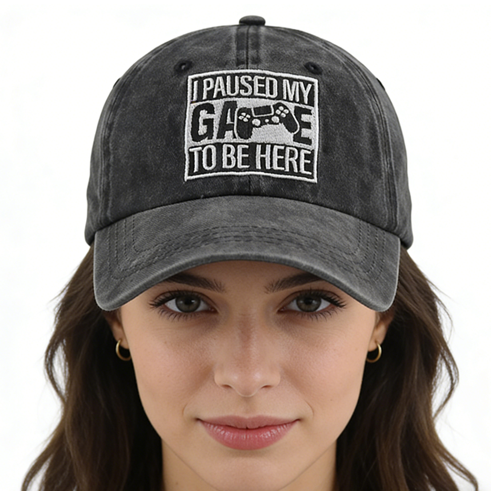 I Paused My Game to Be Here Baseball Cap,Gamer Gifts for Men Women, Adjustable Embroidered Wash Cotton Baseball Cap