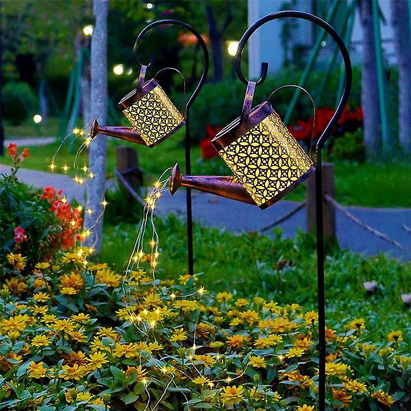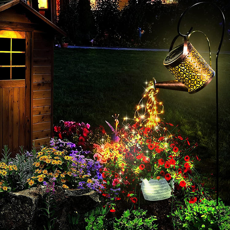 • Outdoor Solar Watering Can with Cascading Lights: This solar lights outdoor garden decor is a unique and nice decoration for the garden, which realistically mimics the effect of flowing water. Garden decor for outside looks like little star shower lights at night. Outdoor decorations for patio adopt premium punched iron sheet with hollow designation, increasing luminous beauty, preventing it from rusting as well.