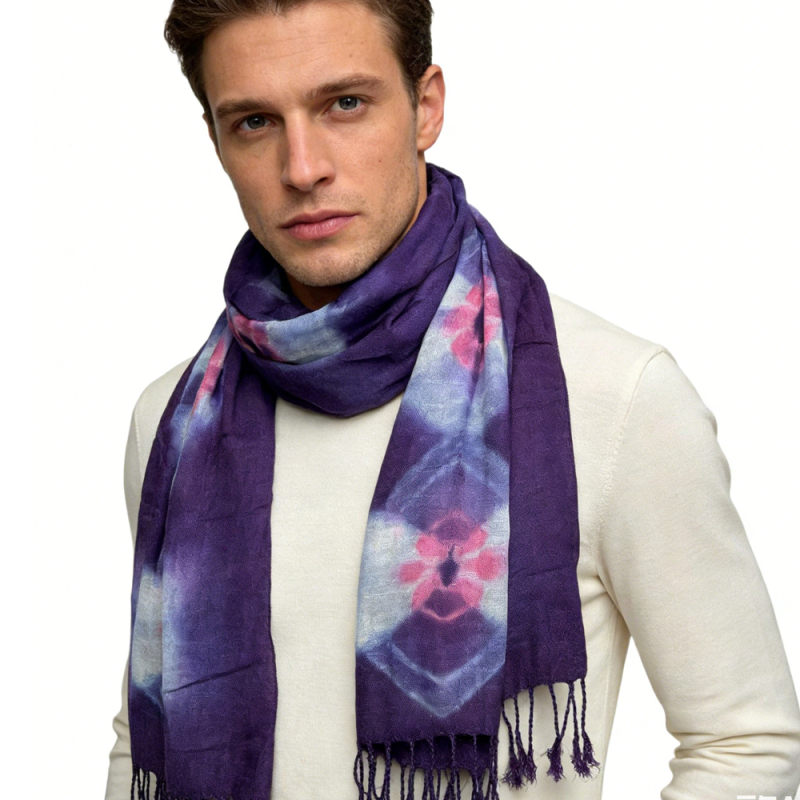 Lilac purple floral Tassel trim Scarf,offers graceful movement Flowy Boho Scarf,vacation,daily life,evening party,Office appropriate subtlety for women men
