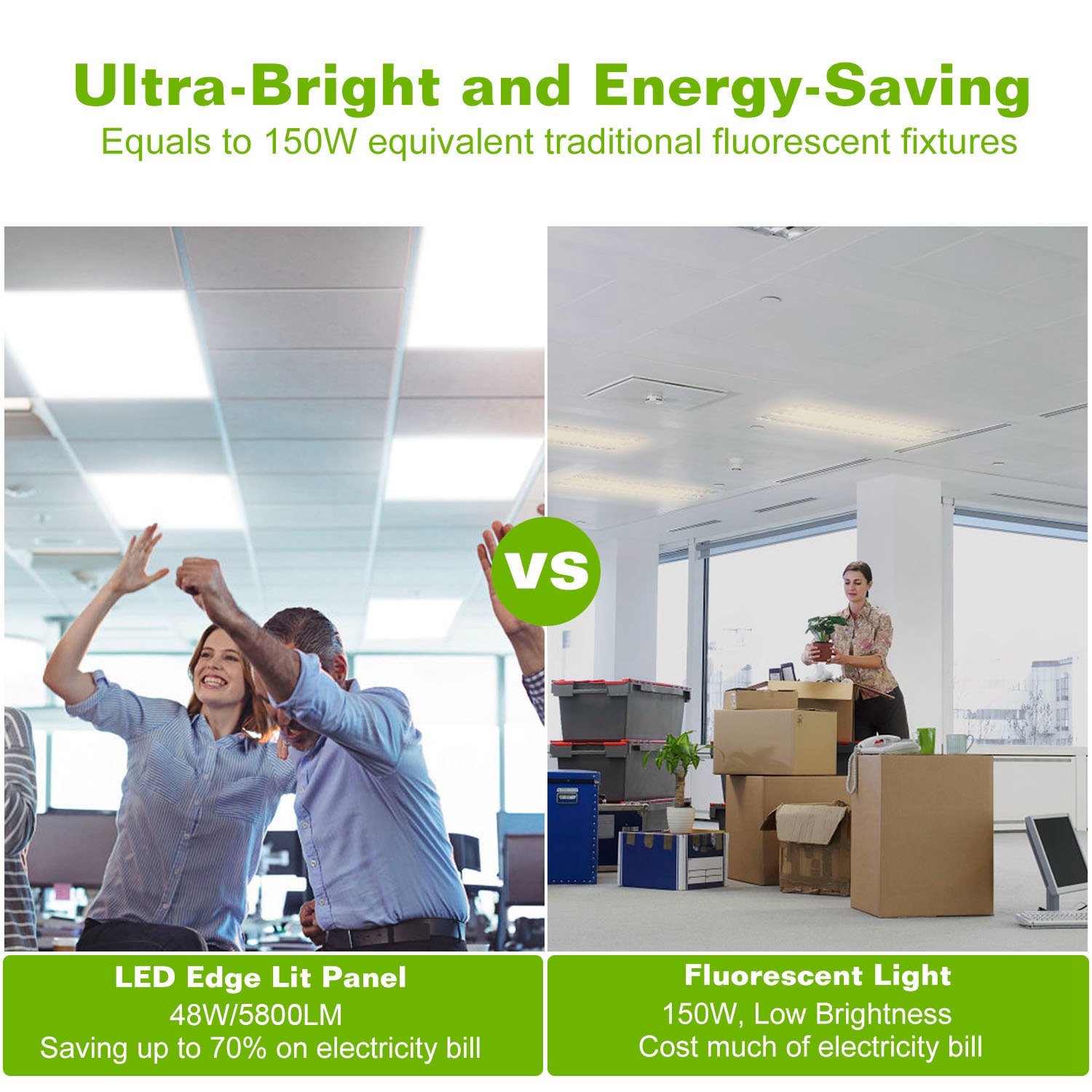 • **Ultra-Bright and Energy-Saving*:Built-in 48pcs SMD4014 LEDs(0.2W/PC),our LED panel light offers total 48W excellent lighting effect equivalent to 150W traditional fluorescent fixtures,saves up to 70% on electricity bill.