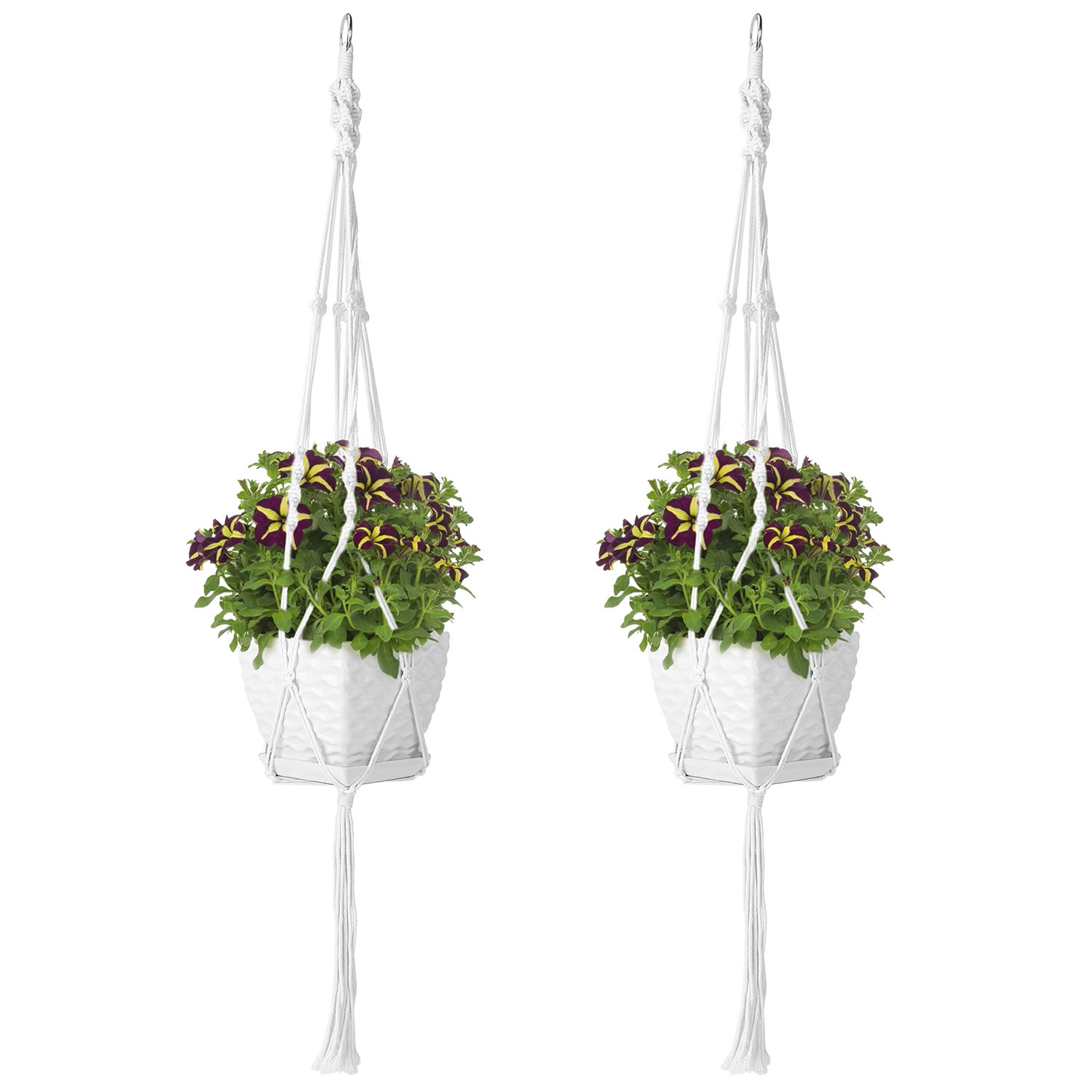 2Pcs Plant Hanger Flowerpot Net Bag 40in Cotton Rope Plant Hangers 4Legs Plant Hanger Fit For Round Or Square Plant Pot