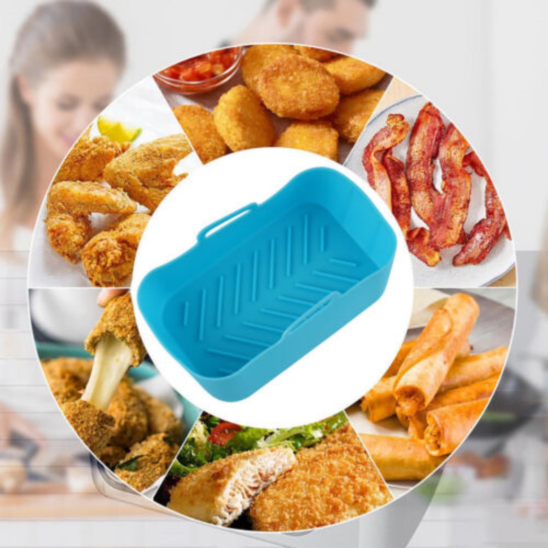 Practical Design: The silicone liner is designed with handles on both sides to protect your hands from being scalded when taking it out. And help the oil in the food to flow to the edge of the tray when cooking, preventing the food from being soaked by the oil.
