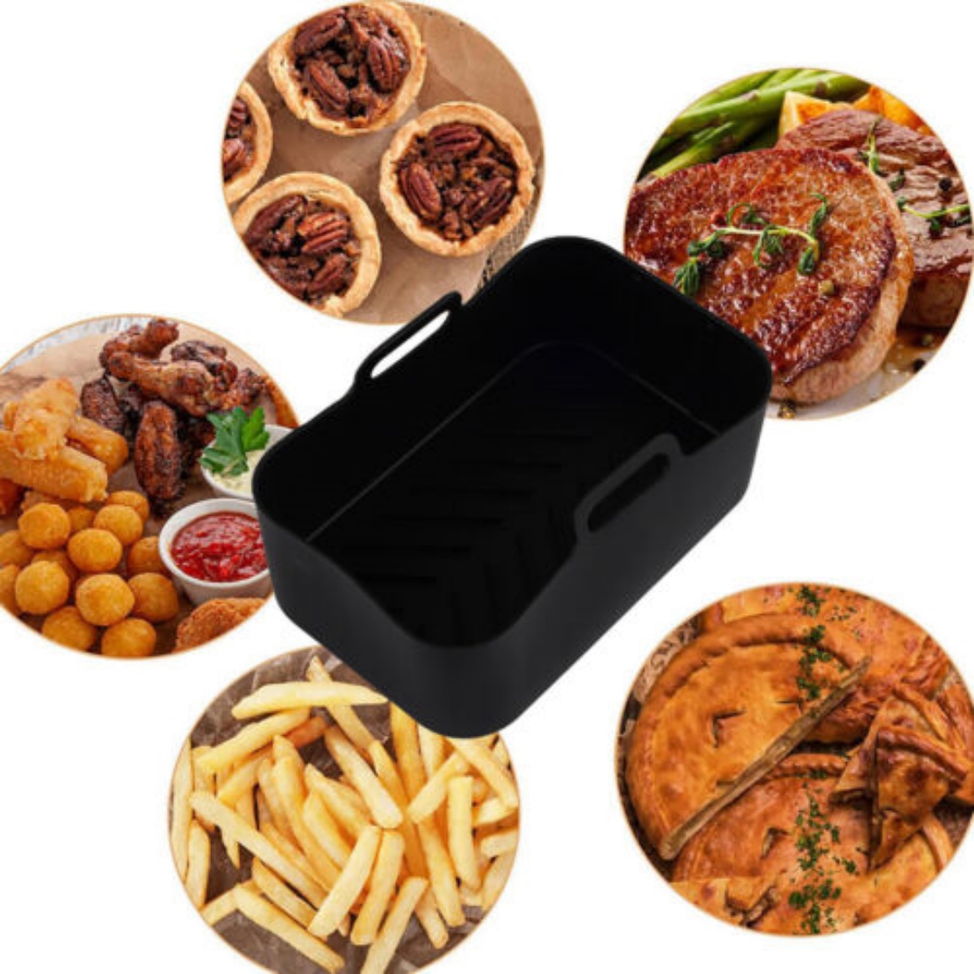 Square Silicone Pot For NINJA Air Fryer Kitchen BBQ Plate Heating Baking Pan UK
