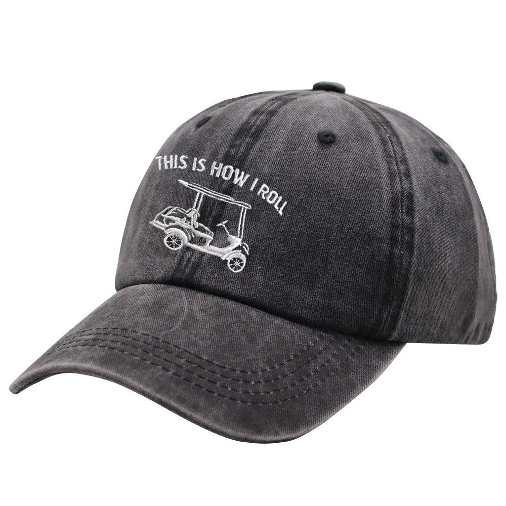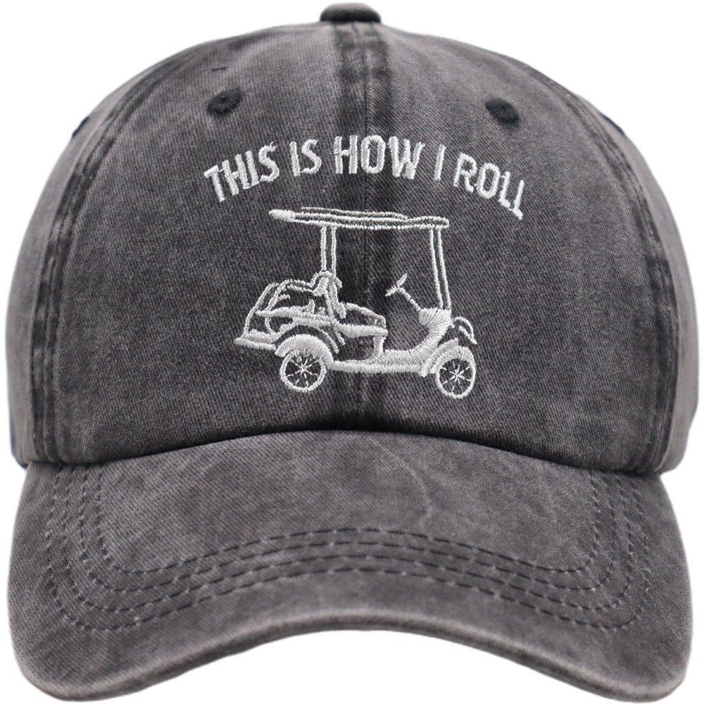 This is How I Roll Golf Cart Hat, Funny Golfers Adjustable Cotton Denim Baseball Cap for Men Women
