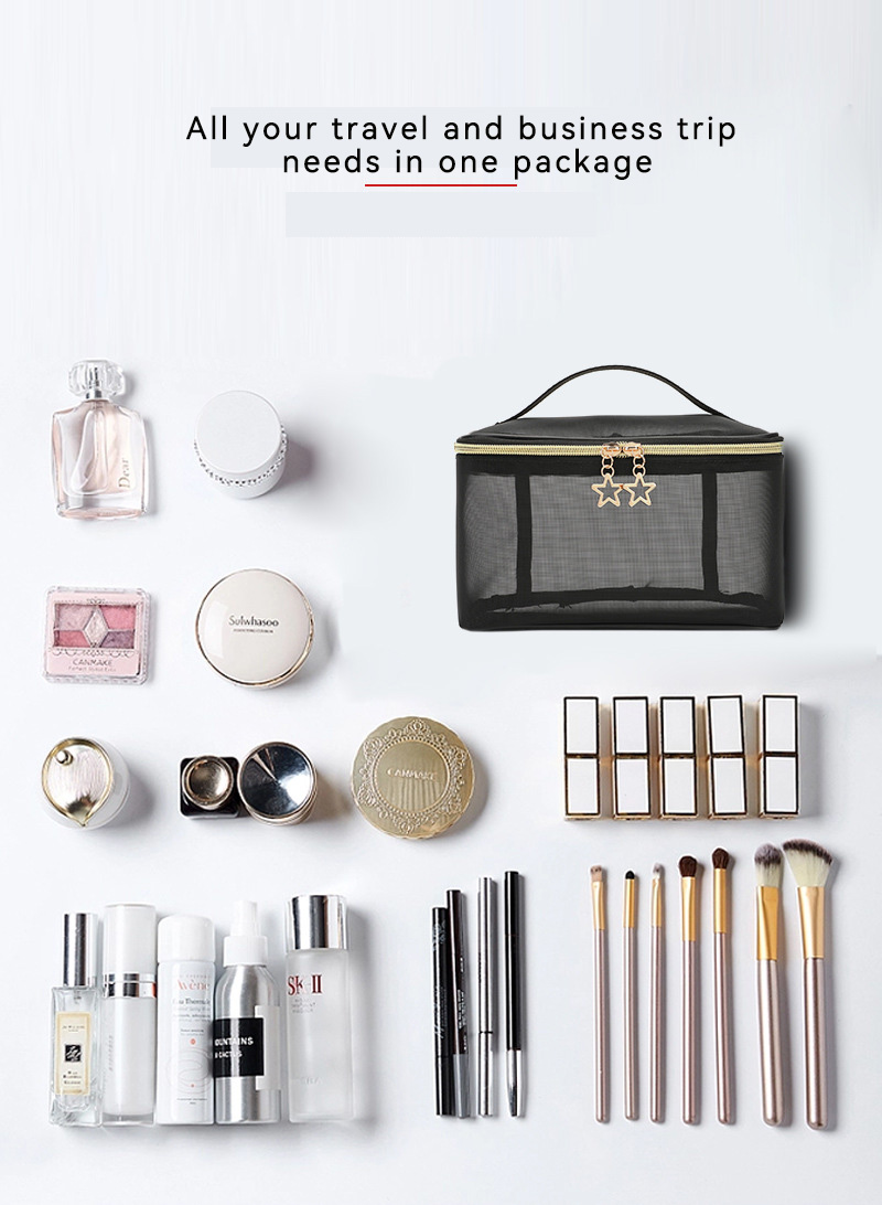 3.【 storage】: This makeup bag features a design with clear visibility, ensuring that you can easily find your items. The upper and lower layers of the storage bag are made of transparent mesh, making it easy for you to quickly find the items you need