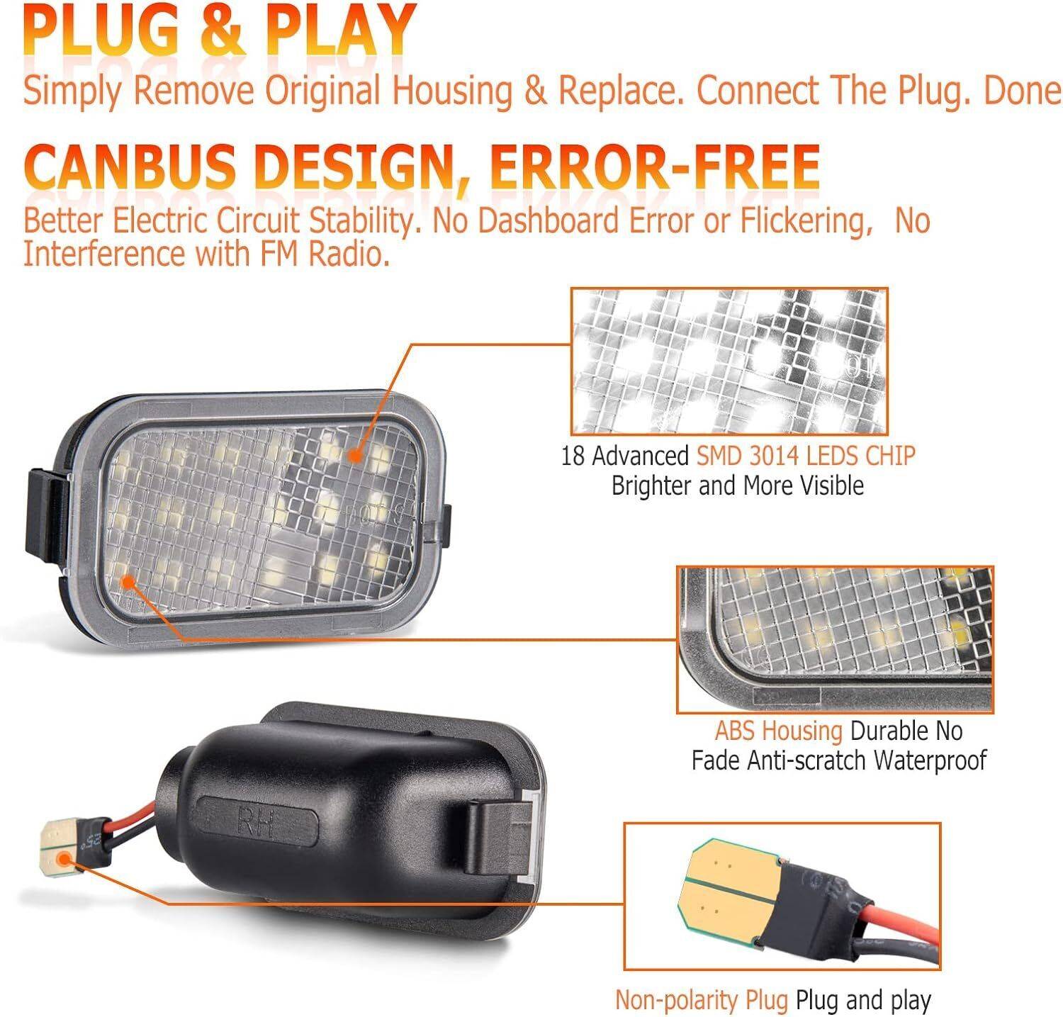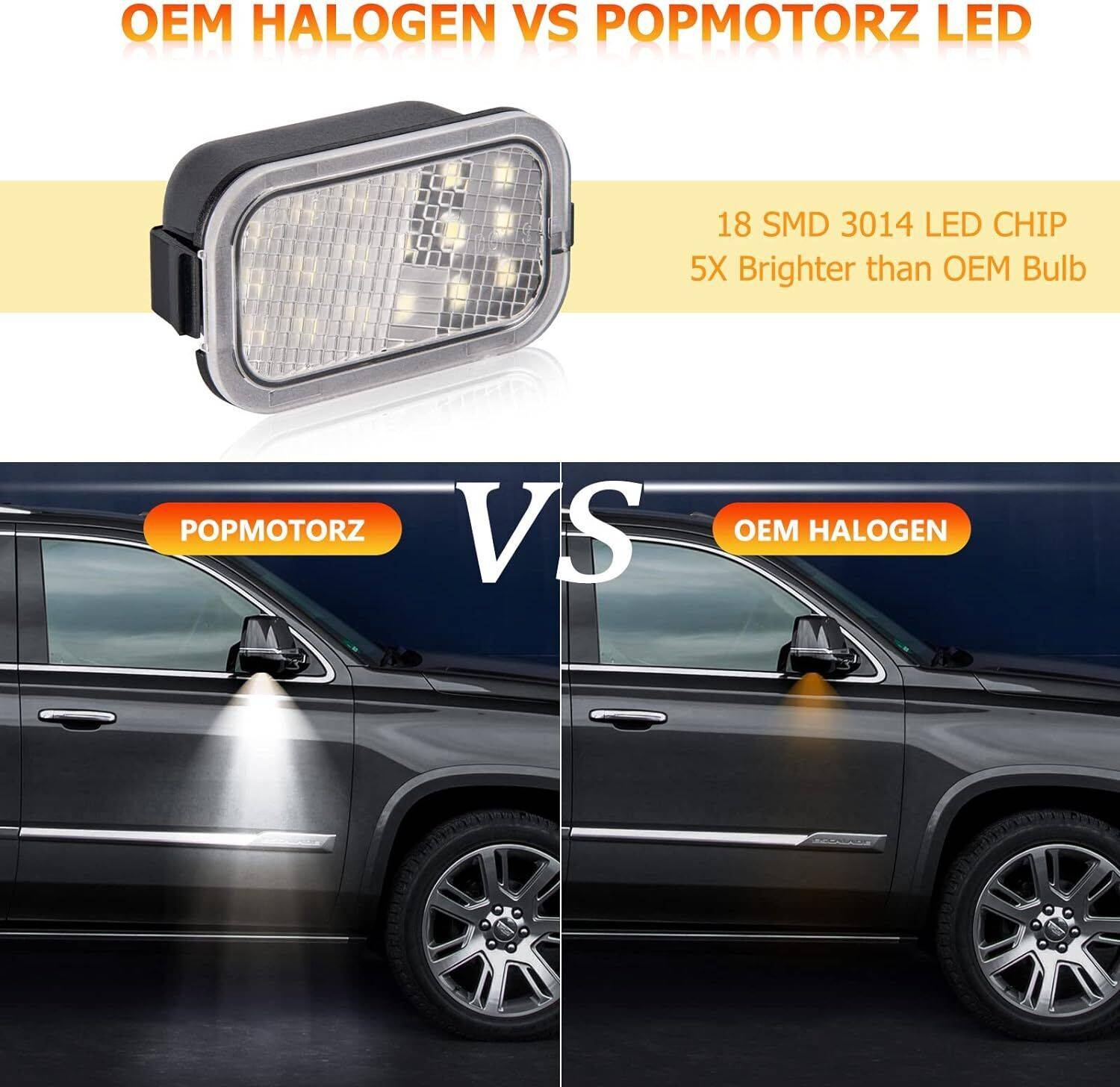 Our mirror puddle lamp adopts brighter superior LED chips than the original car , which can provide 6000k powerful light to maximize ground illumination.