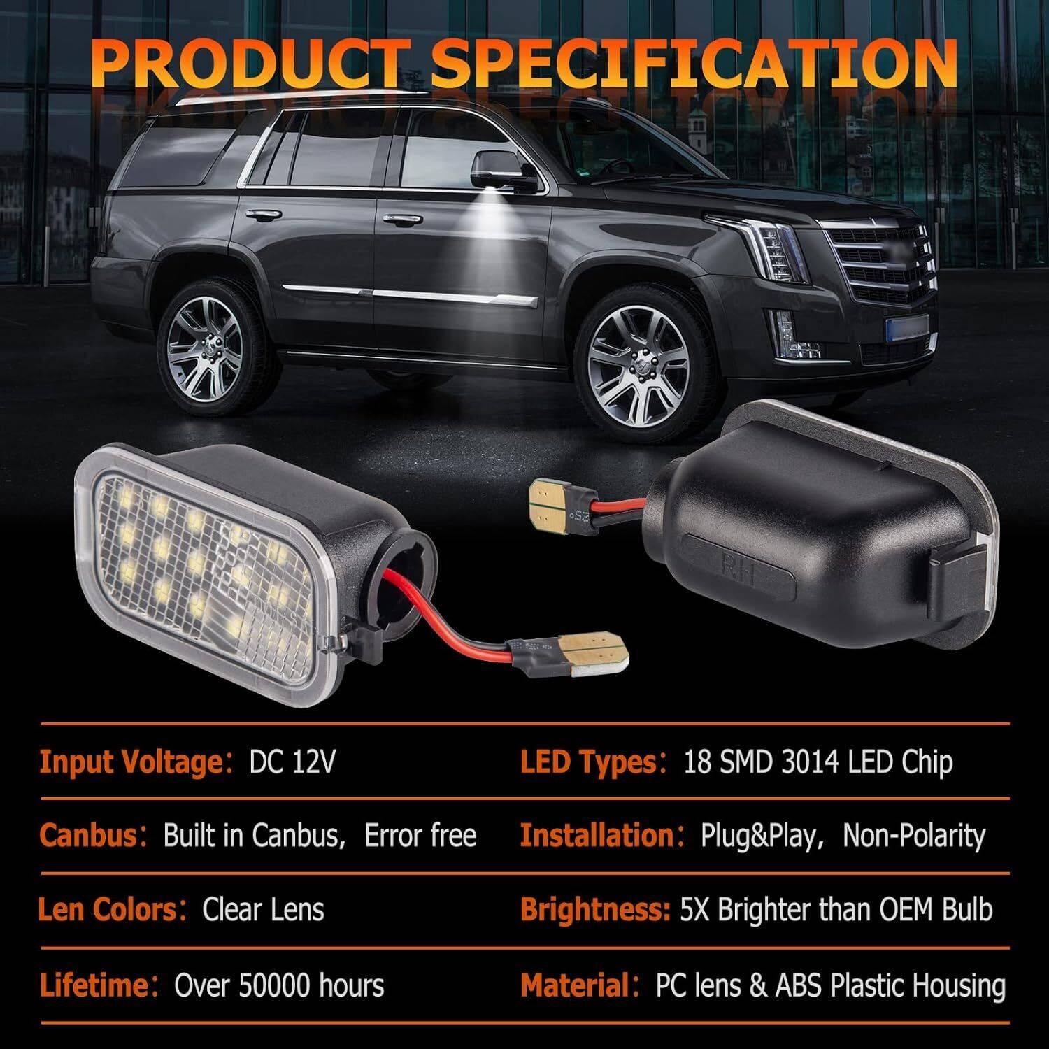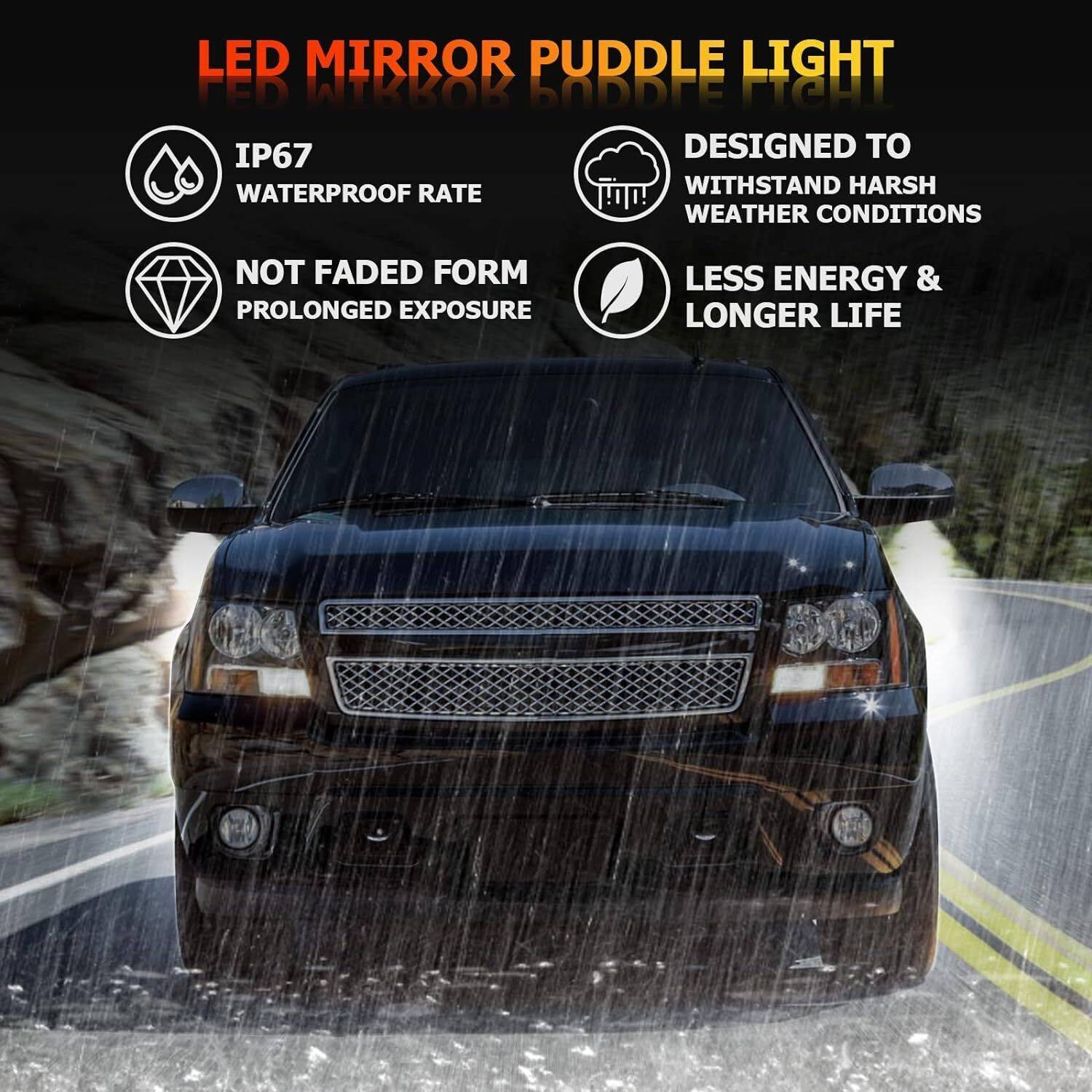 Pack of 2 LED side mirror puddle lights include driver and passenger side. For any questions about this item, please feel free to contact us within 24 hours! We'll reply to you as soon as possible.