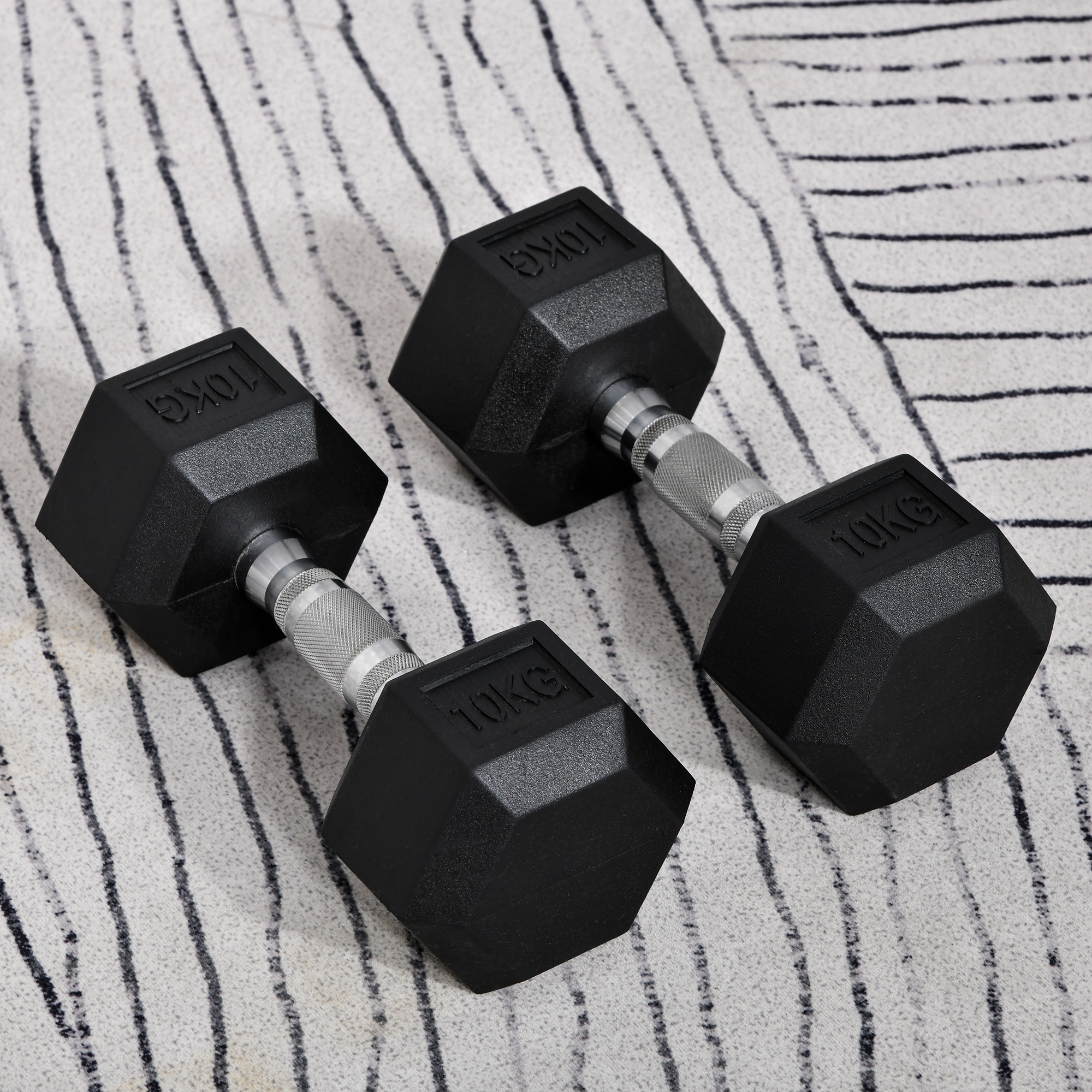 Elevate your fitness journey with this pair of hexagon rubber dumbbells, designed for enthusiasts dedicated to maintaining health and strength. Perfect for home, gym, or office workouts, these dumbbells are crafted from durable metal and rubber, ensuring longevity and floor protection. The knurled grip offers safety and confidence during exercises like alternating curls and triceps kickbacks. Ideal for integrating into strength training plans.