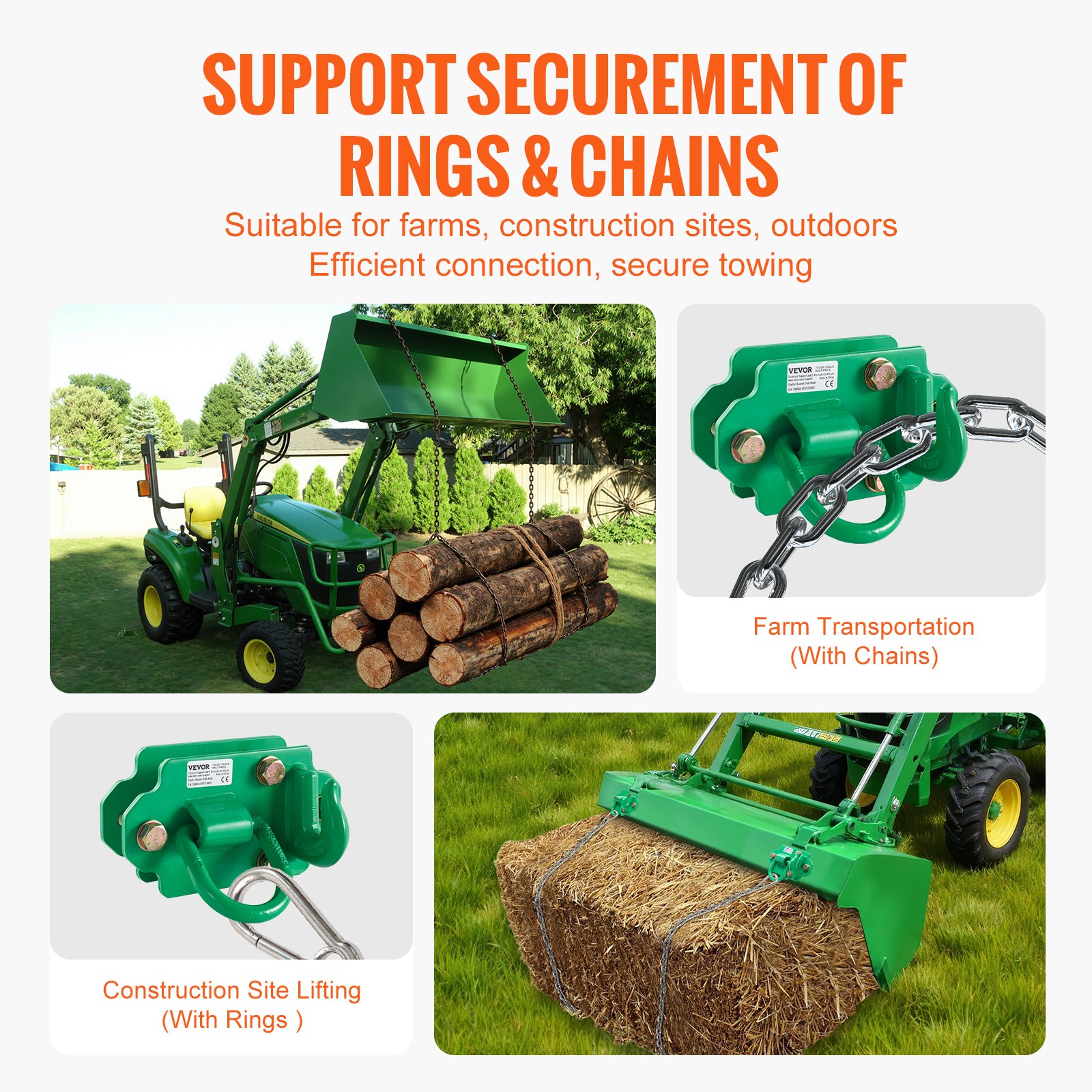 Easy Installation: The tractor grab hooks are compatible with 3/8" chains and fit most vehicles, including agricultural vehicles, tractor bucket, and off-road vehicles. It can be easily assembled and disassembled, allowing for convenient use without the need for drilling or external tools. The installation process consists of just four simple steps, making it user-friendly and efficient for everyone.
