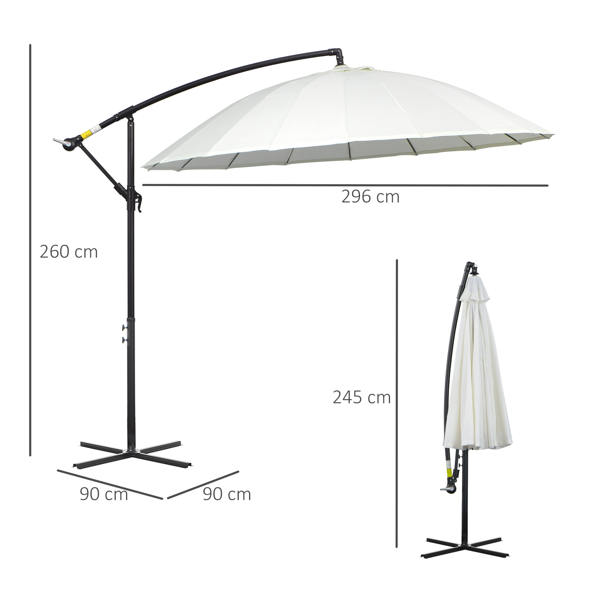 Enjoy the sun the safe way - keep yourself protected with this parasol umbrella from . The overhanging design means it's can be positioned on the edge of tables to give you shade, without the central pole blocking your view at the table. The large polyester canopy provides plenty of shade and reduces the risk of direct UV damage and sunstroke. The canopy is connected to the tough metal frame with 18 fibreglass ribs for extra strength and stability. It's finished with a hand crank, which opens and closes the canopy smoothly and easily - so everyone can use it. Please note, only a cross base included, no counterweight base. For a compatible base, search the following skus: 84D-070, 84D-128, 84D-048 and 84D-124.