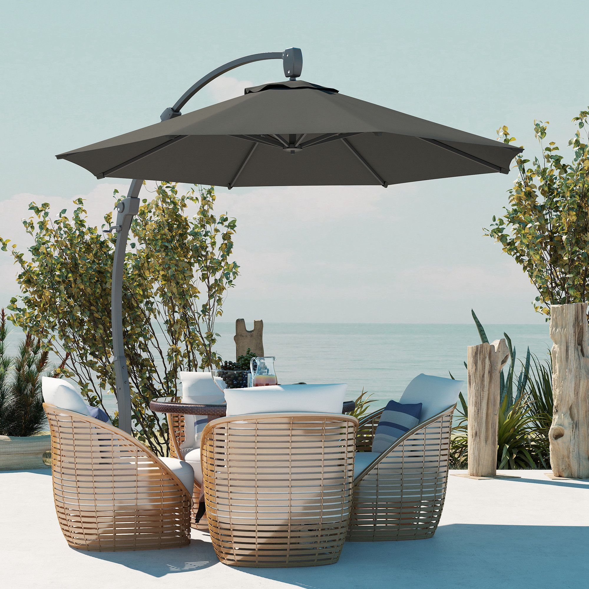 Enjoy all-day shade with our cantilever parasol! The water-resistant canopy, made from 250 gsm polyester with PA coating, keeps you cool and protected from the sun while resisting fading. With a 360° rotation feature, you can easily adjust it for suitable sun coverage. The rust-resistant aluminium frame offers long-lasting durability and portability. Great for patios or garden, this garden parasol with base included brings both functionality and style to your outdoor space.