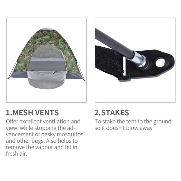 Enjoy entertainment outdoors with the 3-4 Person Camping Dome Tent! It has a spacious room that can sleep up to 4 persons. The dome is made of 180T silver coated polyester; which is breathable; tear-resistant; and UV-proof. Meanwhile; the floor uses strong and waterproof nylon oxford. Glass fiber poles feature high-strength while remaining lightweight. And it can be packed into the included portable bag for ease of transportation. For weekend camping or outdoor adventures; this tent is definitely a great choice. Don't hesitate to order now!