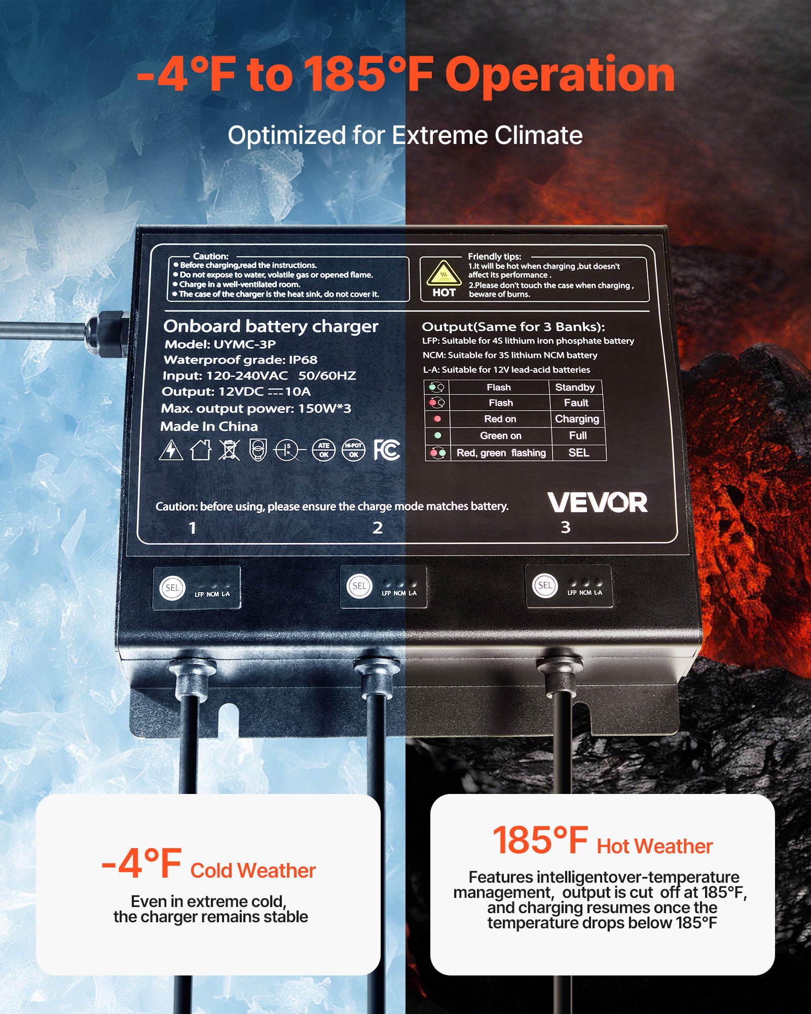 Fast & Multi-Stage Charging: Our marine battery charger delivers fast charging with a high power output of 3-bank 150W. Its intelligent multi-stage charging management adjusts power based on battery status, ensuring efficient and secure charging
