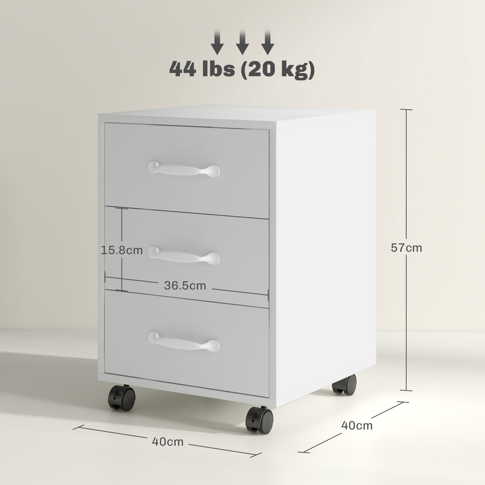 3 Drawer File Cabinet, Mobile Filing Cabinet On Wheels For Home Office, Study, White
