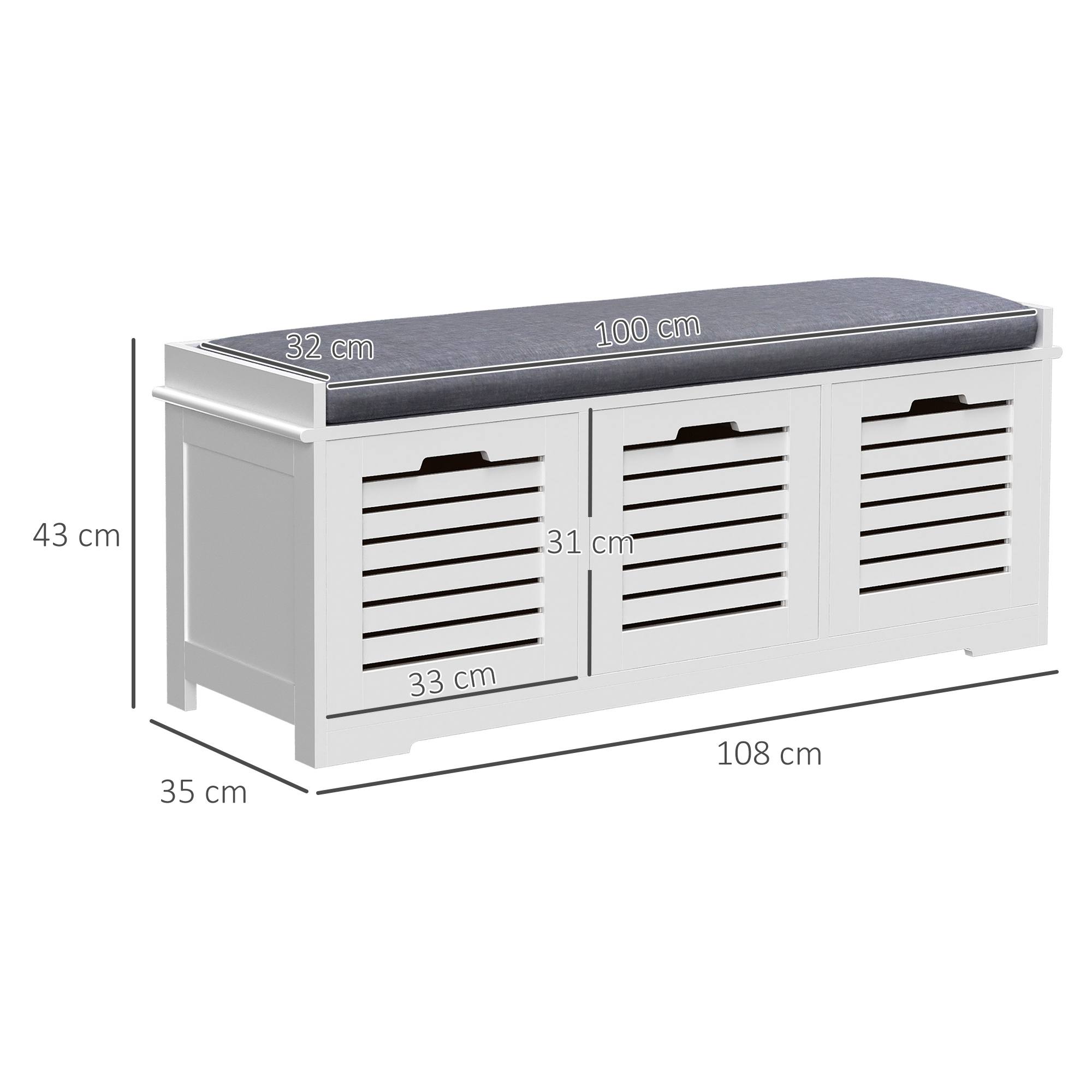 Give your shoes somewhere proud to stand with this storage unit from . Its design is made of three compartments for lots of holding space, with a flat cushioned top so you are able to sit on it. Made from MDF, the frame is tough and reliable for everyday use. Using sponge for the cushion for comfort, it is wrapped in linen so it is smooth and easy to wipe clean. The slatted doors of the compartments allow fresh air to circulate through, with low corner feet elevating the unit to finish.