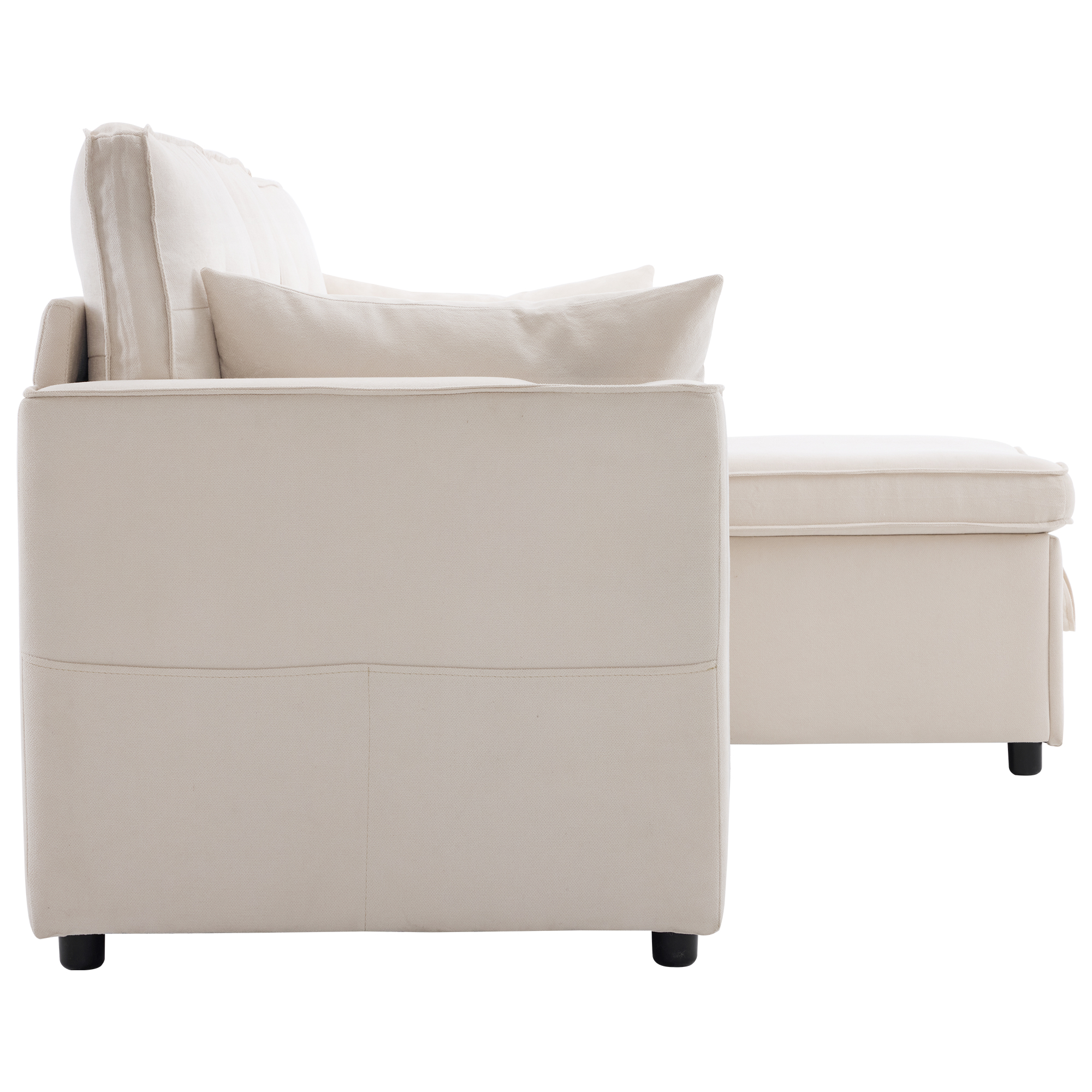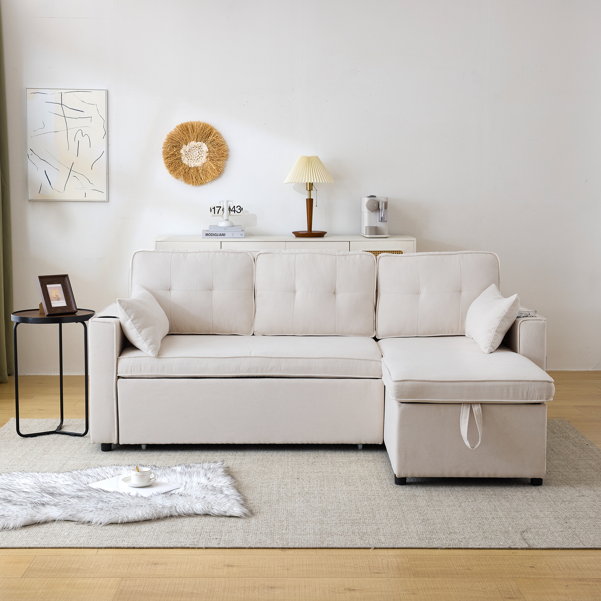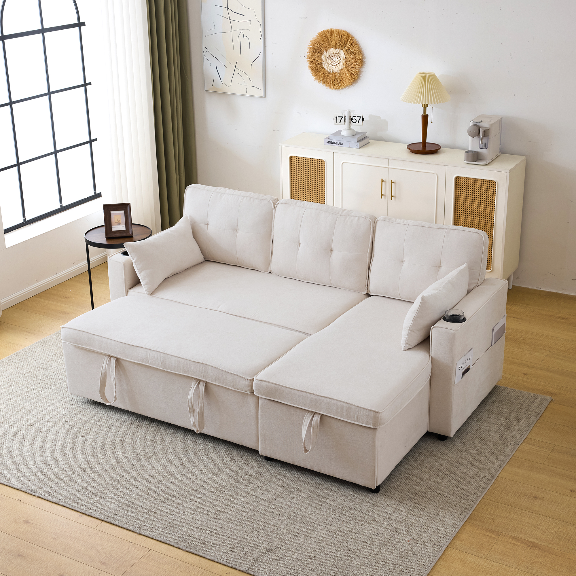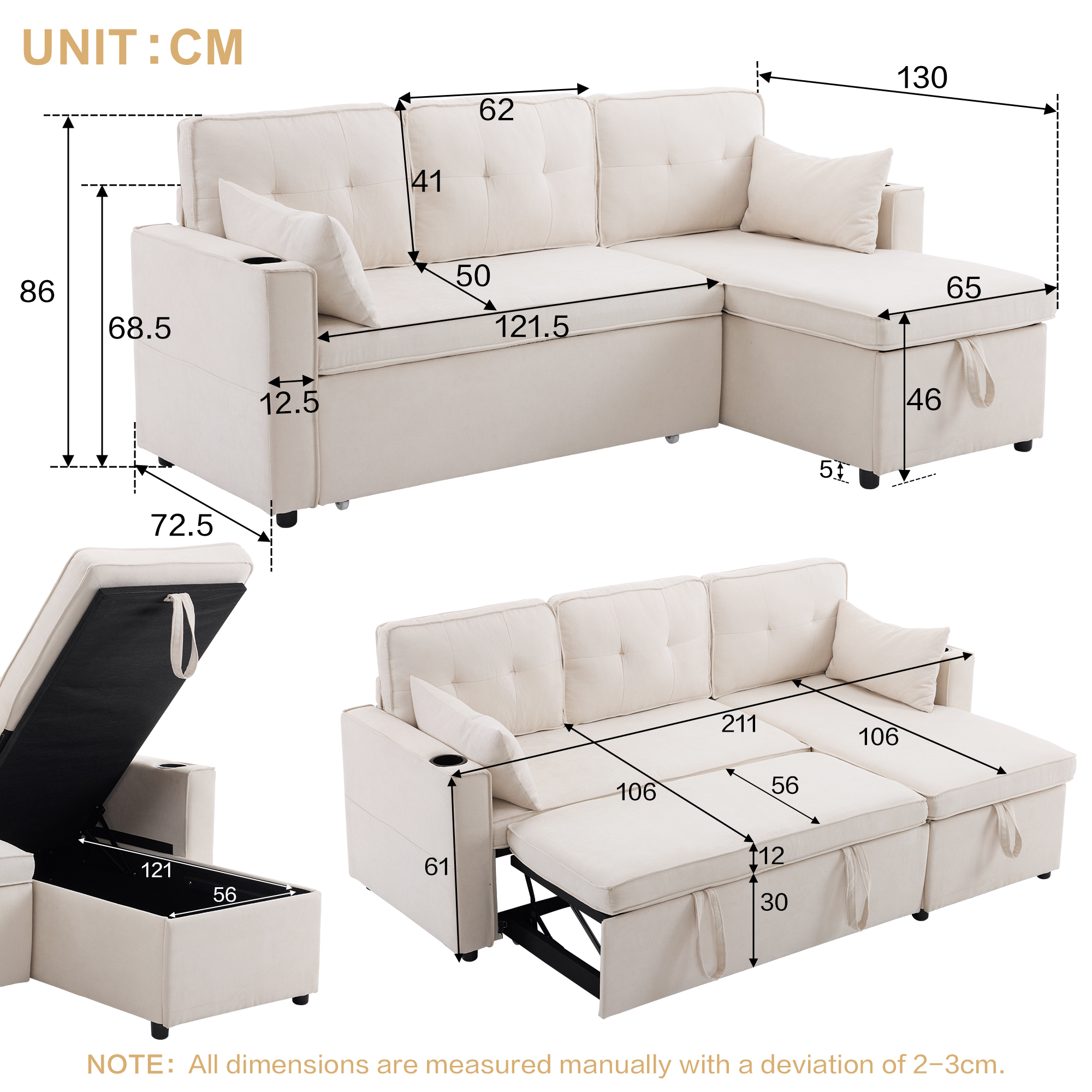 Product Name:3-in-1 Convertible Sofa Bed with Internal Storage Chaise, L Shaped Sleeper Sofa Couches with Cup Holders, Pillows and Storage Pocket. Pullout Sectional Daybed for Living Room/Bedroom/Office, Beige