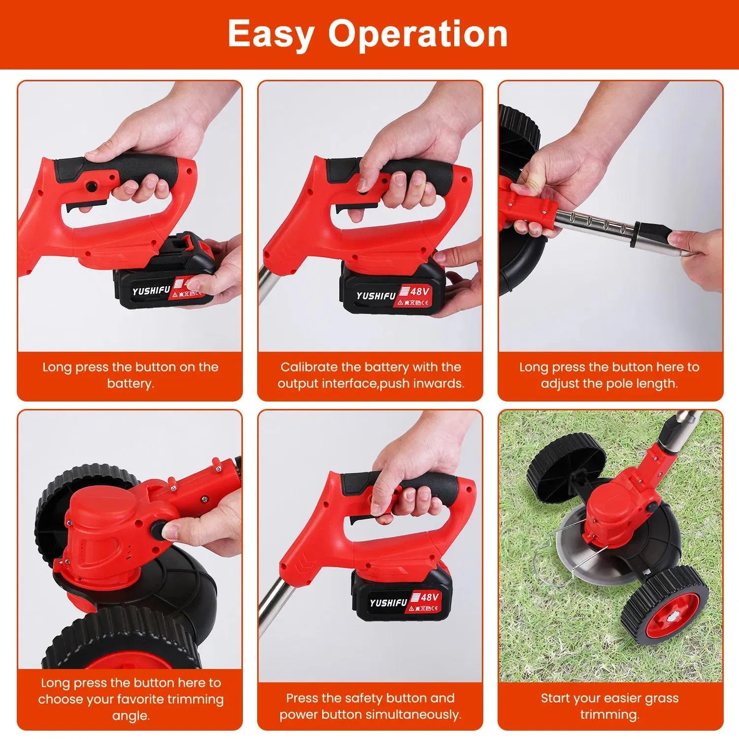 3 In 1 Electric Cordless Grass Wacker Battery Powered Grass Trimmer With Wheels Adjustable Head Extendable Length Rechargeable Lightweight Lawn Trimmer With 2Pcs 2500mAh Batteries