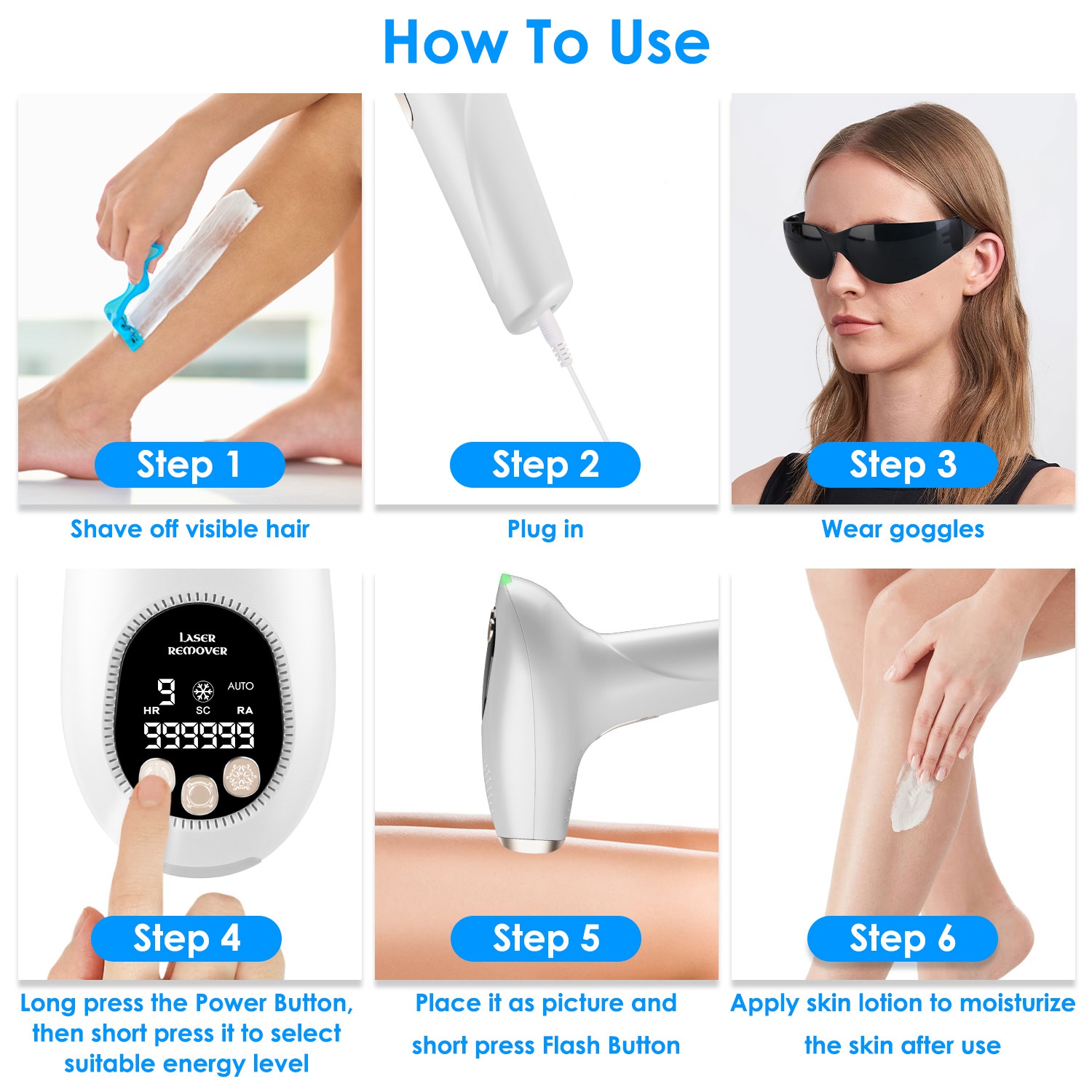 *999,999 Permanent Flashes*:The permanent hair removal equips with upgraded 999,999 flashes are enough for a lifetime of use and allow you to share it with your family or friends. Feature LCD design,easy to read and use.