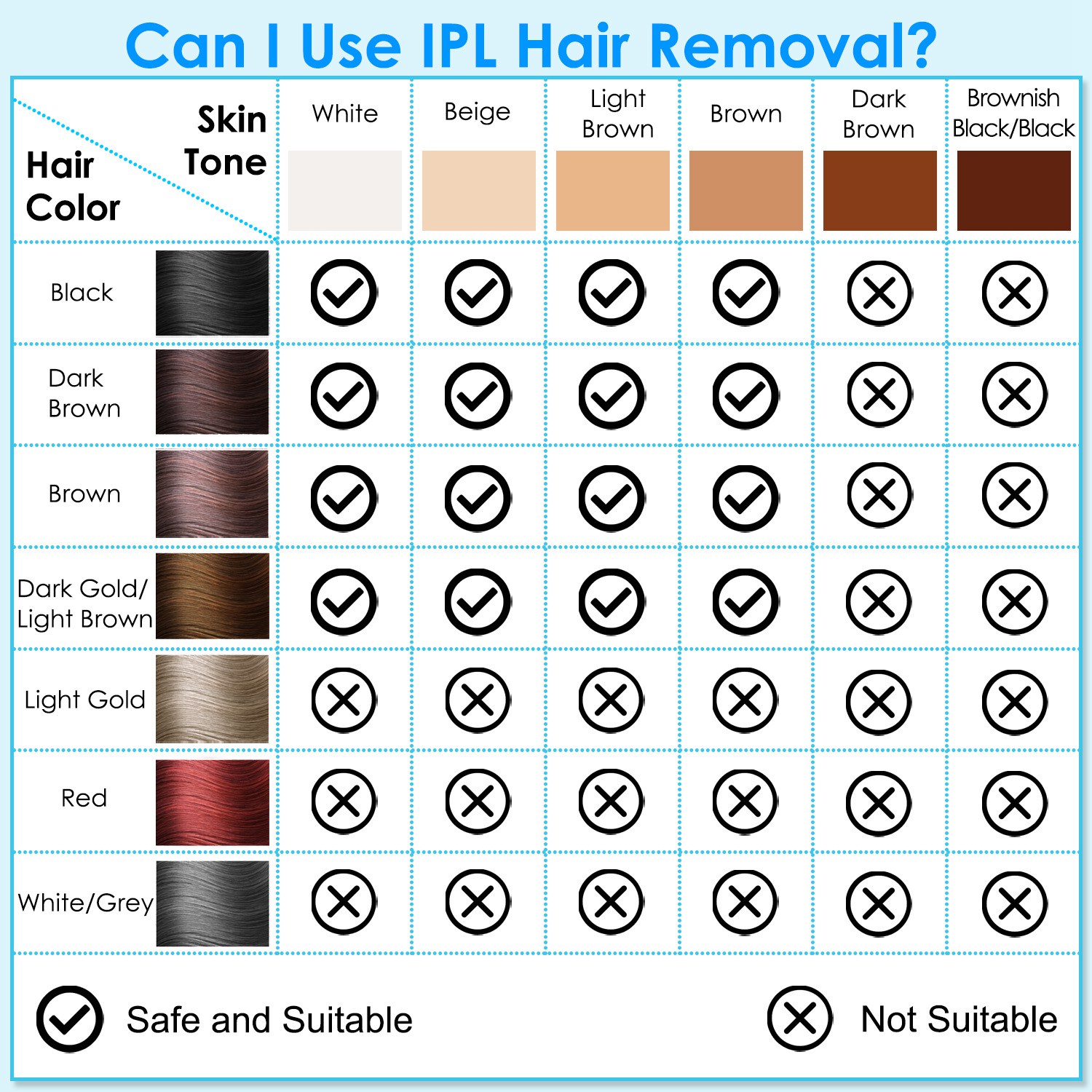 1. This laser hair removal is not applicable for dark brown/black skin.