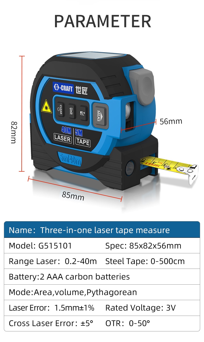 Color classification: 40 meters laser distance measurement + laser cross + 5 meters tape measure, 60 meters laser distance measurement + laser cross + 5 meters tape measure