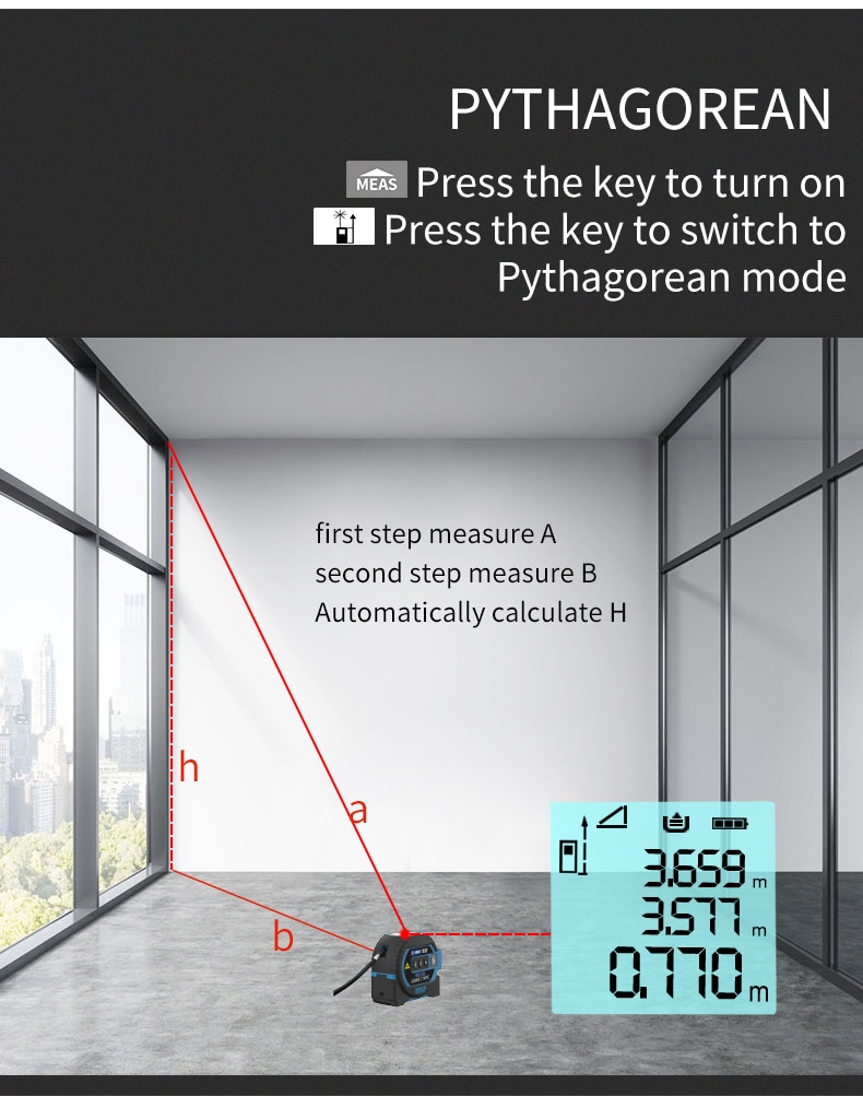 3 In 1 Laser Tape Measure Rangefinder 5m Tape Ruler Infrared High-precision Intelligent Electronic Ruler Building Distance Meter